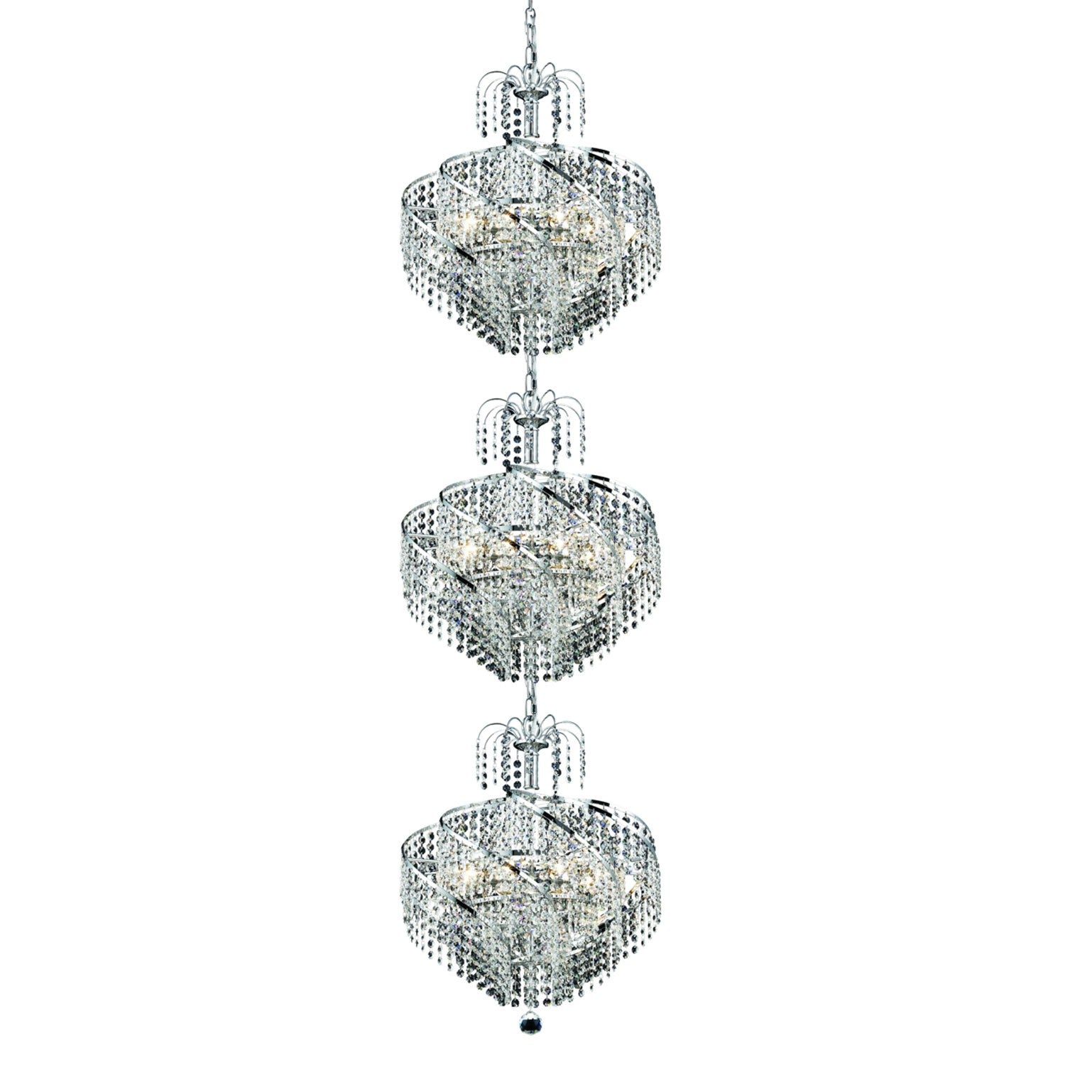 Spiral Chrome Twenty-Four Light 18-Inch Three-Tier Pendant with Royal Cut Clear Crystal