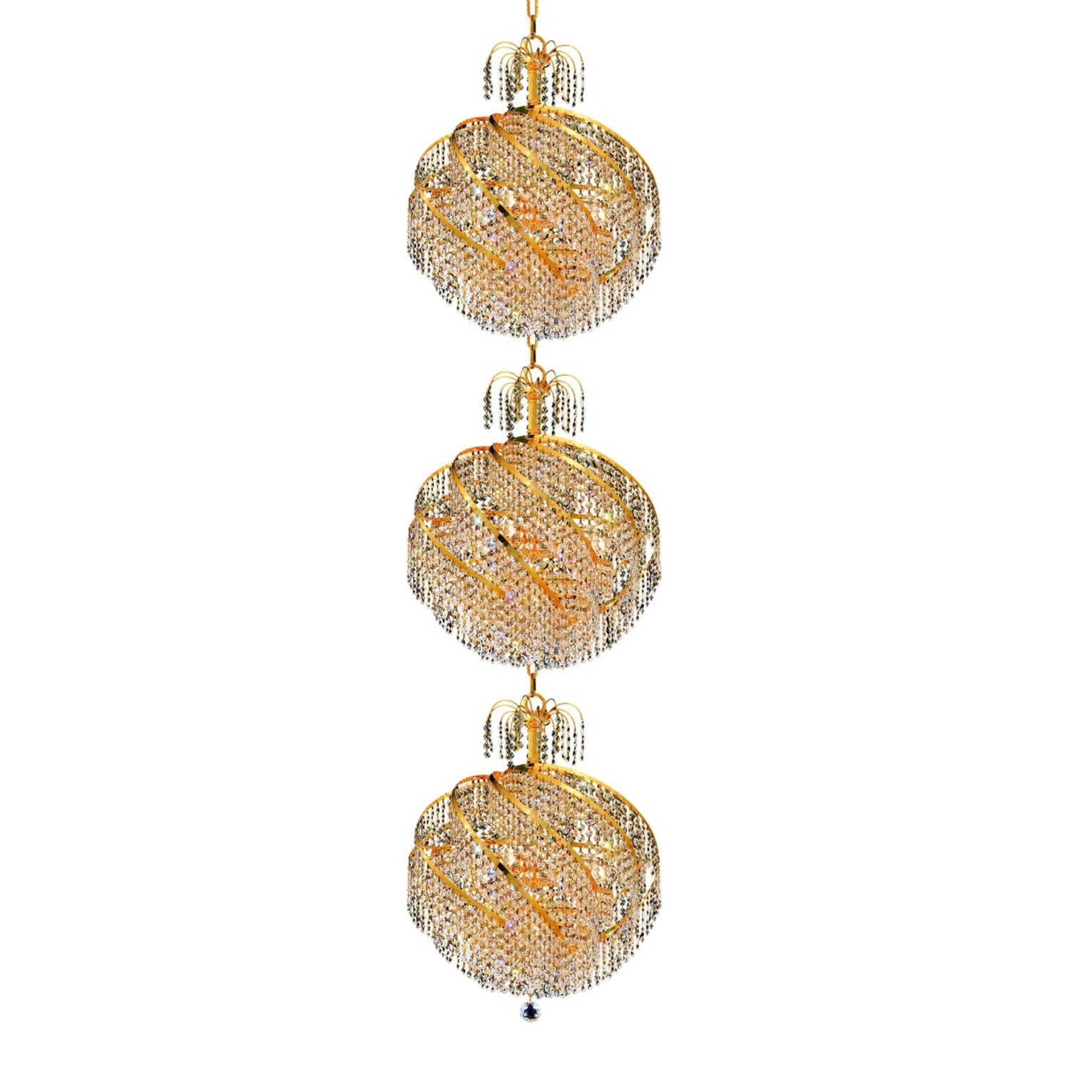 Spiral Gold Thirty-Light 22-Inch Three-Tier Pendant with Royal Cut Clear Crystal