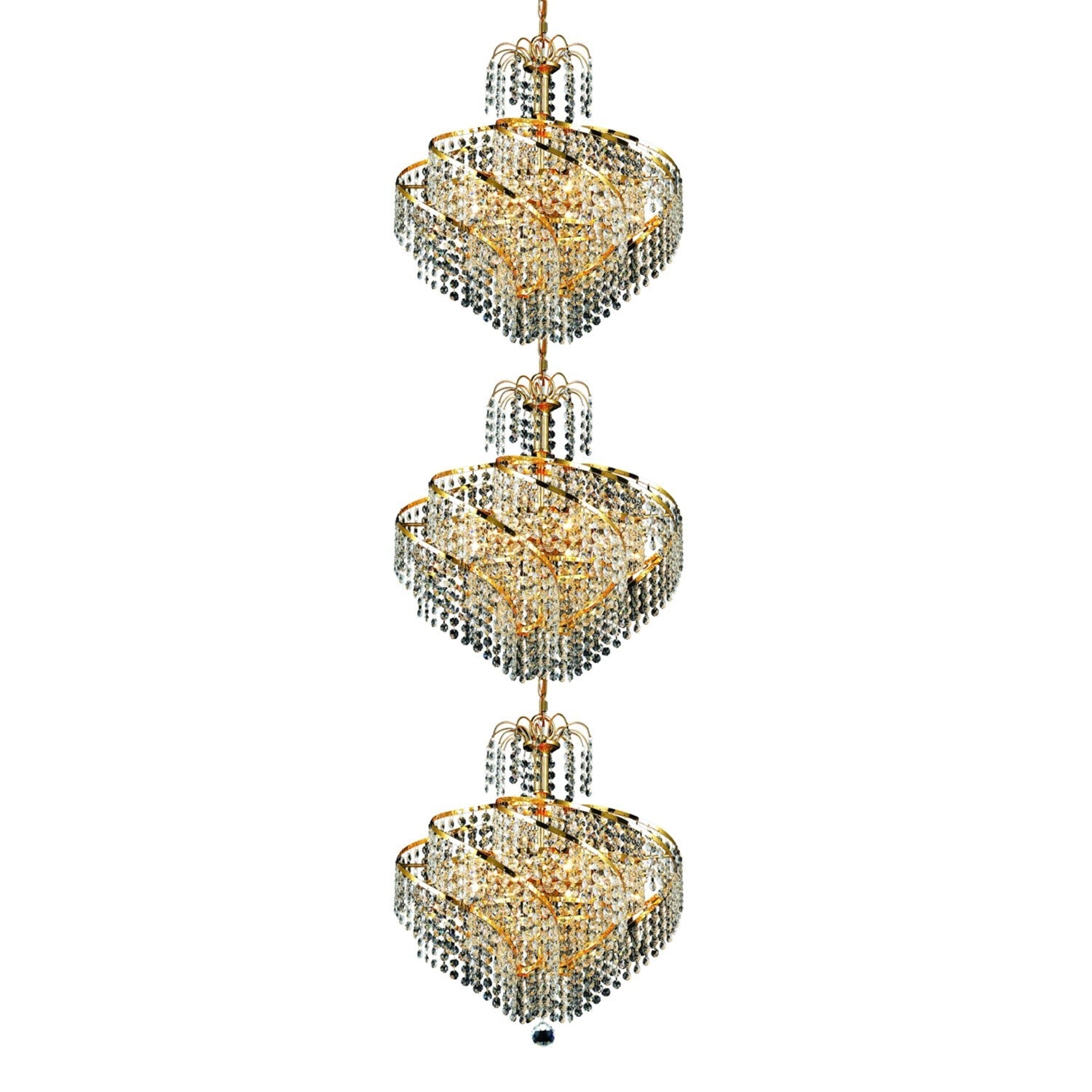 Spiral Gold Twenty-Four Light 18-Inch Three-Tier Pendant with Royal Cut Clear Crystal