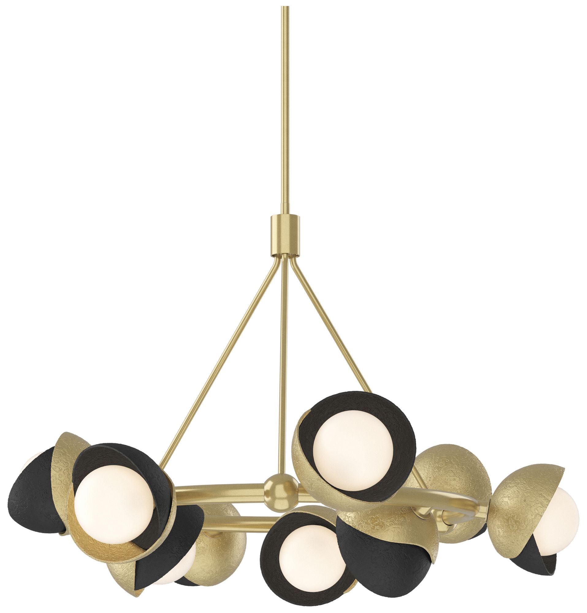 Brooklyn 32"W 9-Light Black Accented Modern Brass Double Shade Ring Pe