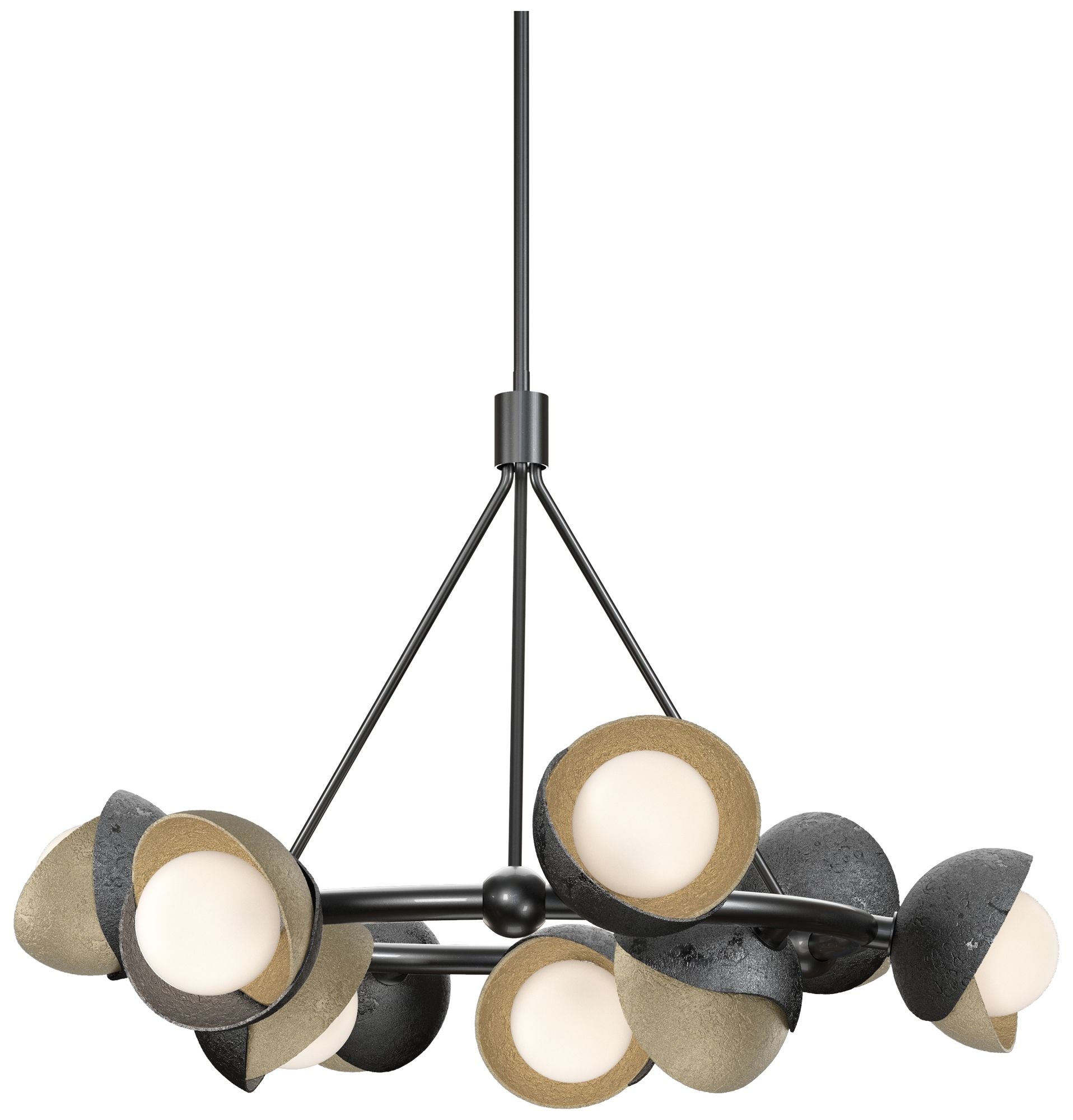 Brooklyn 32"W 9-Light Gold Accented Ink Ring Pendant w/ Double Opal Sh