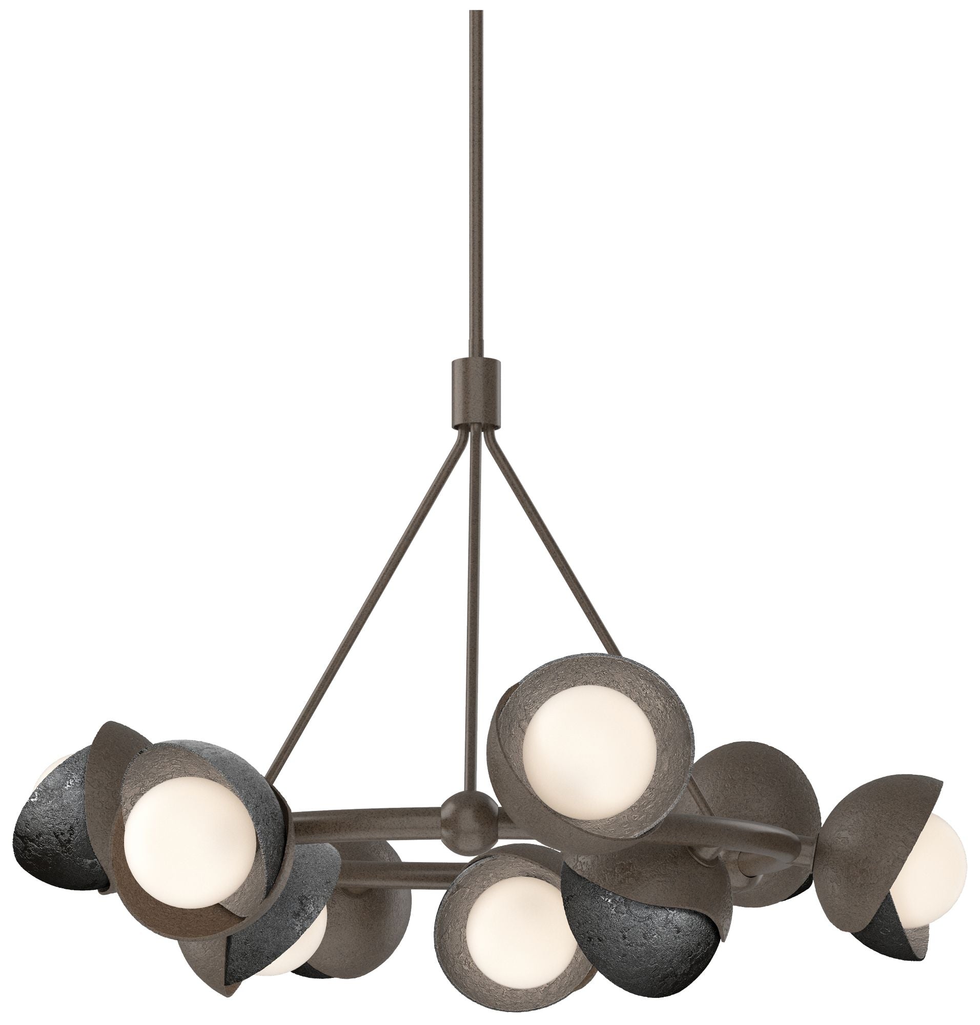 Brooklyn 32"W 9-Light Ink Accented Bronze Ring Pendant w/ Double Opal