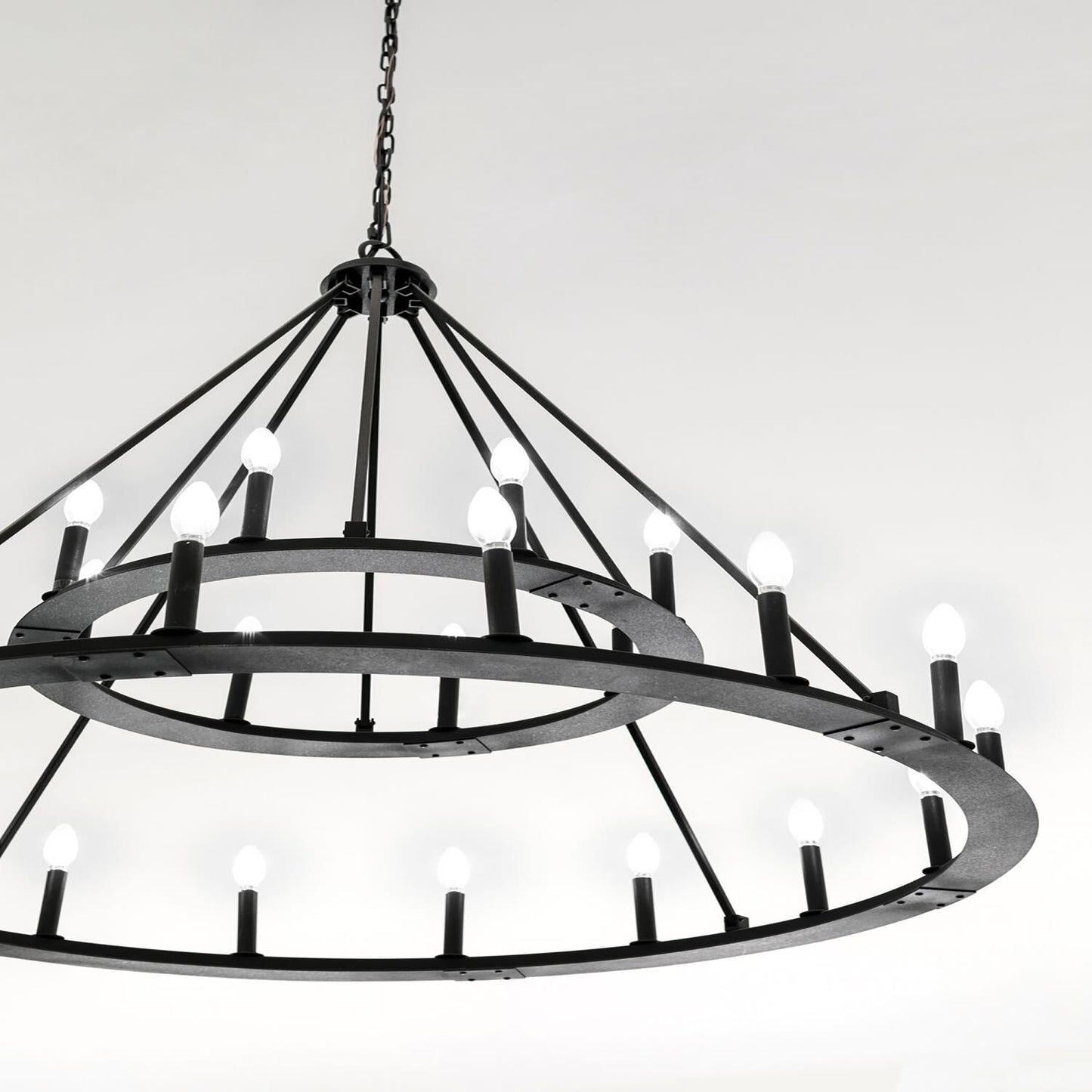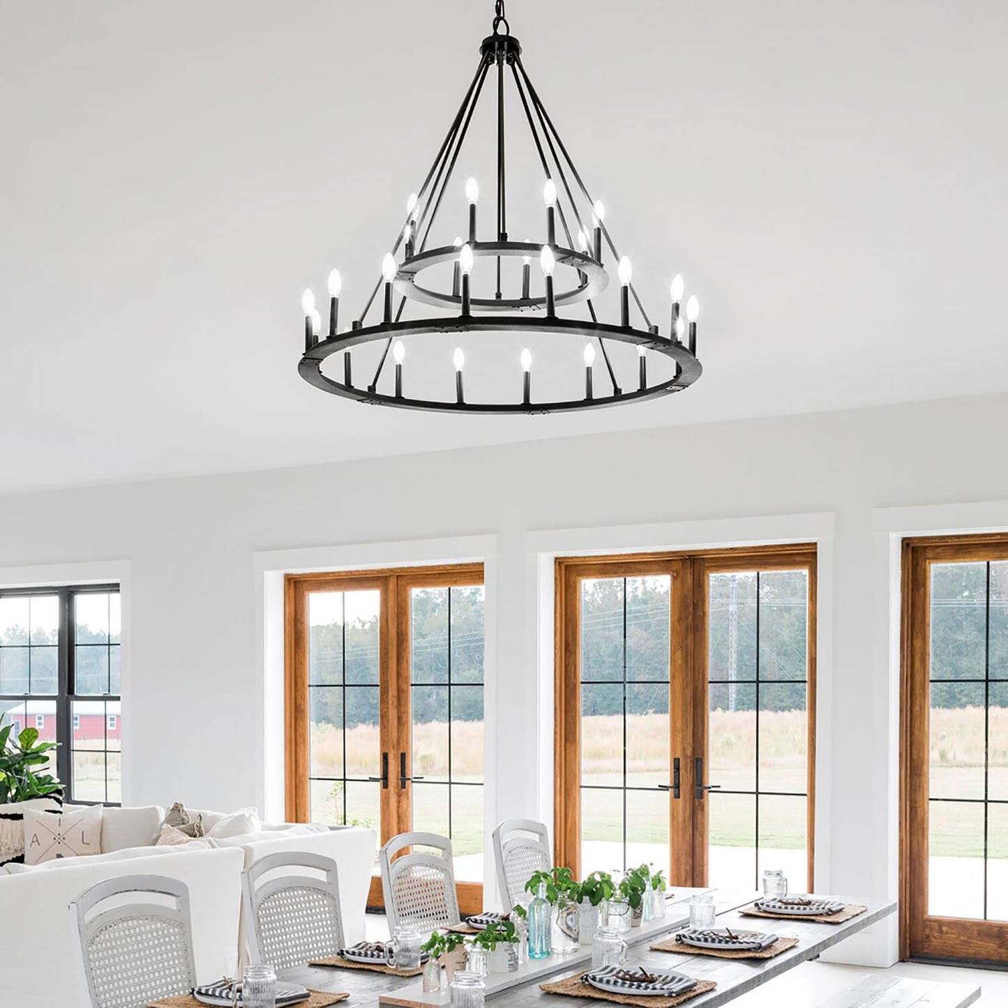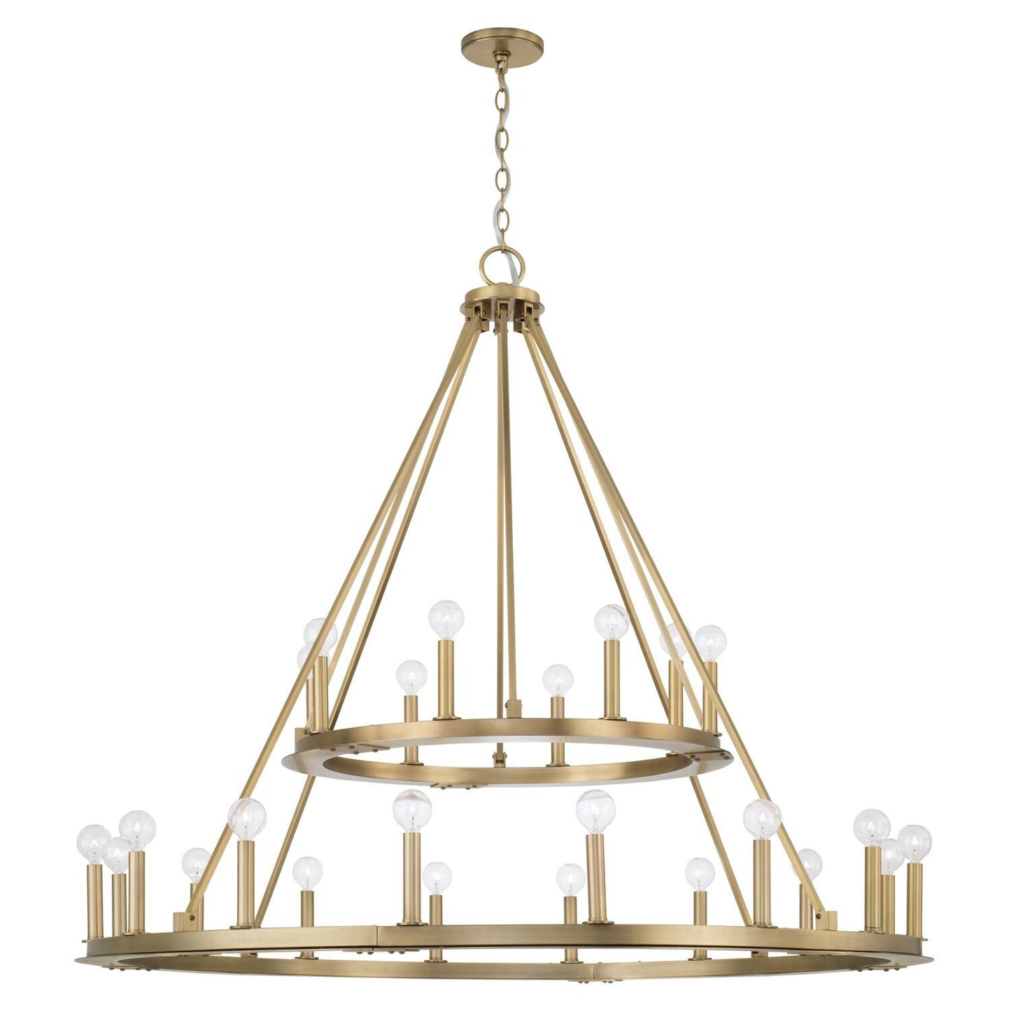 Inspired by industrial design, the Pearson 24-Light Chandelier delivers charming farmhouse character. The Aged Brass finish adds a mid-century modern touch, while the two-tiered circular form creates an all-around classic style.