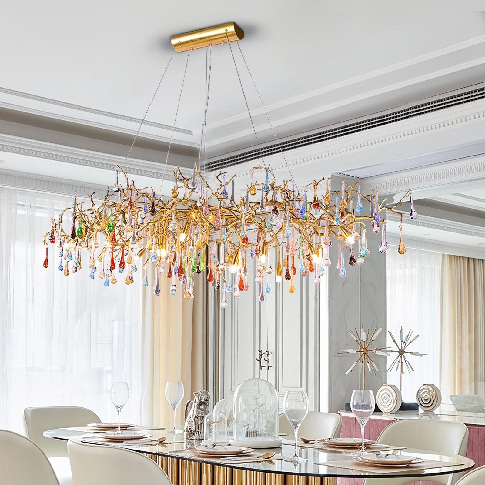 Colorful Raindrop Brass Branch Chandelier