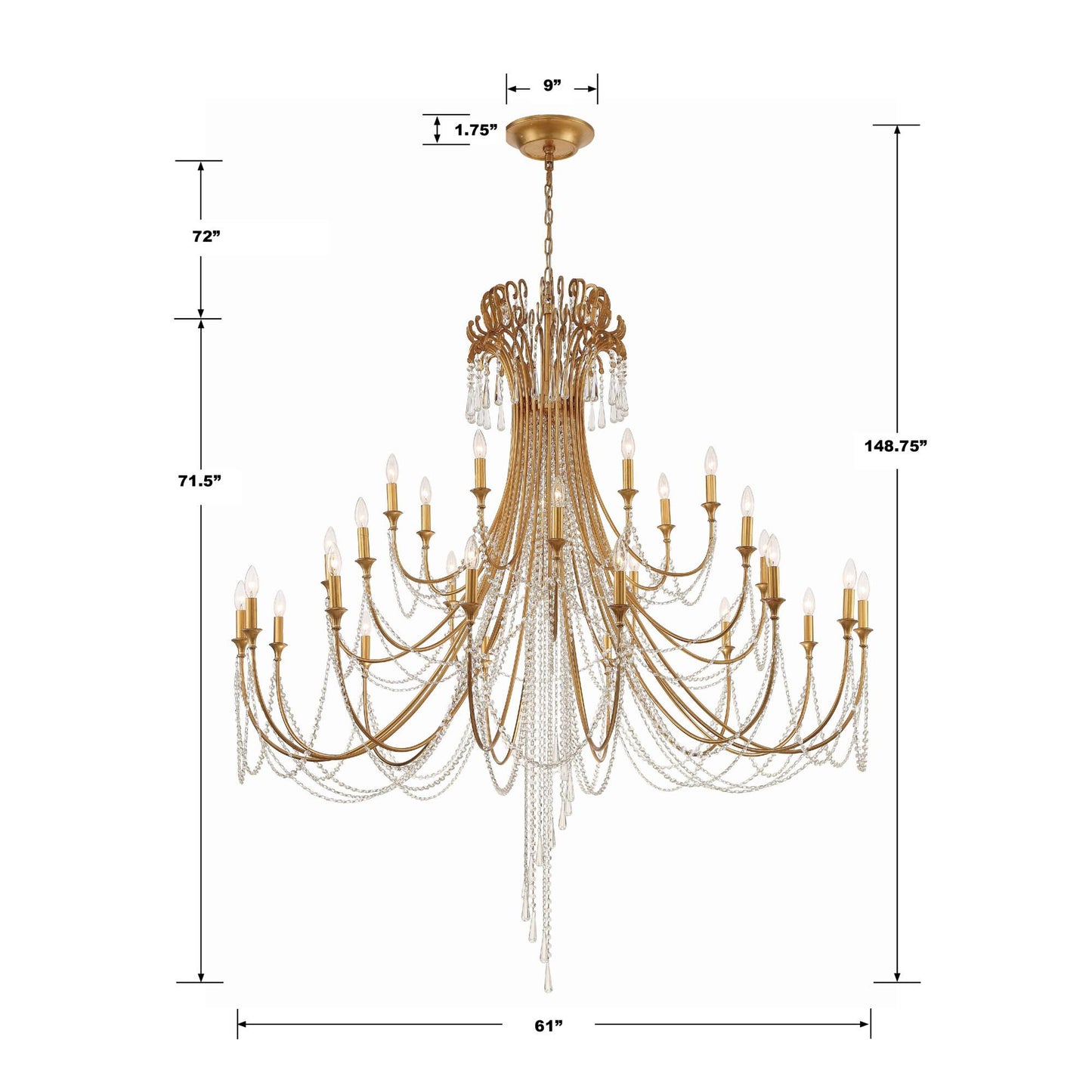 Crystorama Arcadia 61 Inch 28 Light Chandelier Cp527008