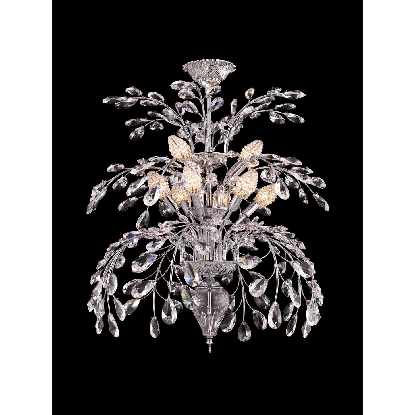 Always at the forefront of home design trends, Dale Tiffany is pleased to present our regal Kingston Crystal Chandelier. The chandelier features a metal base that is finished in gleaming Polished Chrome that adds extra sparkle and shine. 3 tiers of gracefully curved metal branches hold layer upon on layer of solid crystal prism leaves that will glimmer and sparkle when the chandelier is illuminated. Around the center, a row of 9 candelabra bulbs (bulbs not included) are covered with removable bulb covers, allowing you to change the look of the chandelier whenever you like. A delicately faceted crystal fount and candle, as well as a faceted crystal orb finial at the bottom of the chandelier adds even more layers of opulence. Wallington hangs elegantly from a finely cast metal ceiling canopy and center support tube, both finished to match in Polished Chrome. A truly luxurious way to light a formal dining area, our Kingston Crystal Chandelier also makes a grand way to greet guests in foyers and entryways with higher ceilings.
