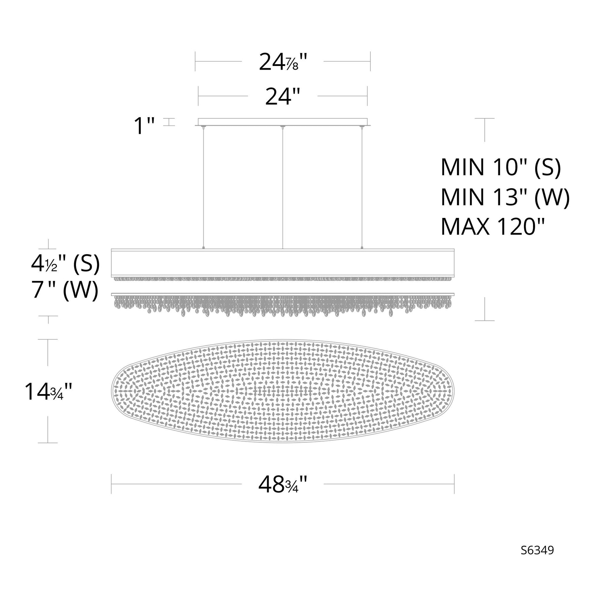 Eclyptix LED 6.5"H x 48.75"W 1-Lt Linear Pendant in Pol Stainless