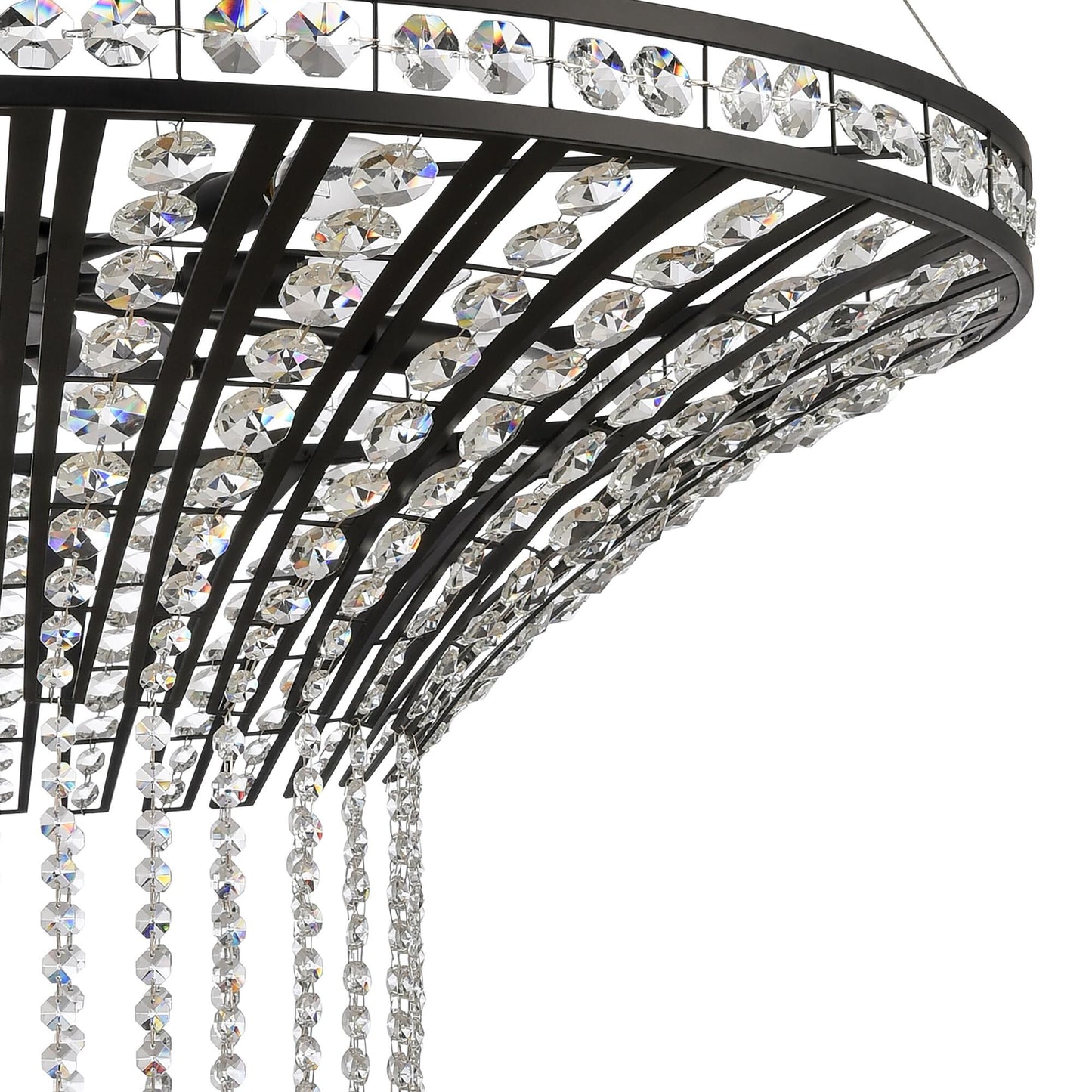 The Fantania collection showcases modern elegance with a crystal laced pendant terminating in a "funnel" of falling crystals.