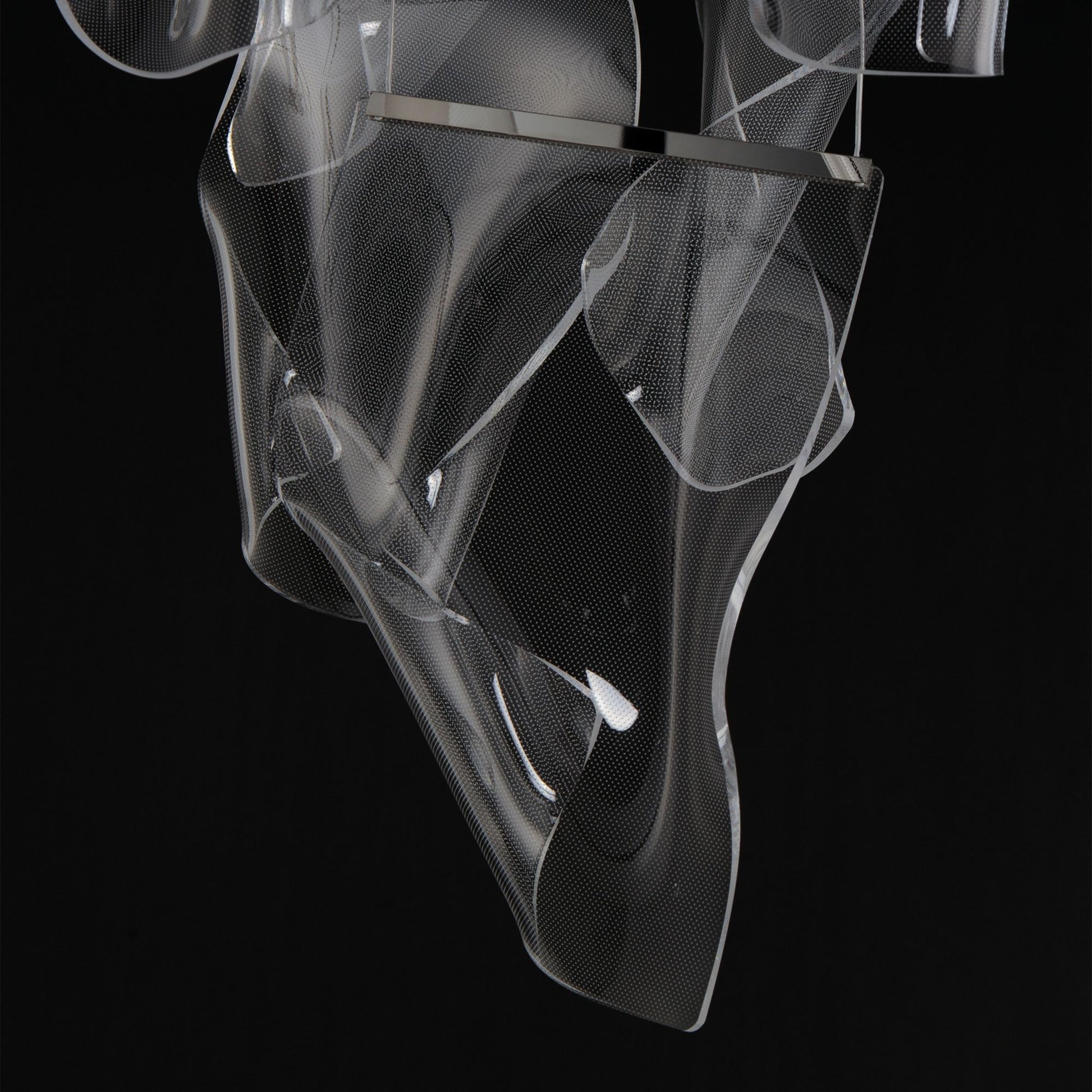 • Brushed gunmetal finish over stainless steel frame. Hand-shaped transparent acrylic diffusers.