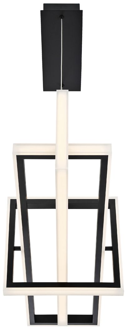 Modern lines of matte black finish embrace a luminous white acrylic diffuser in this energy-efficient LED chandelier.