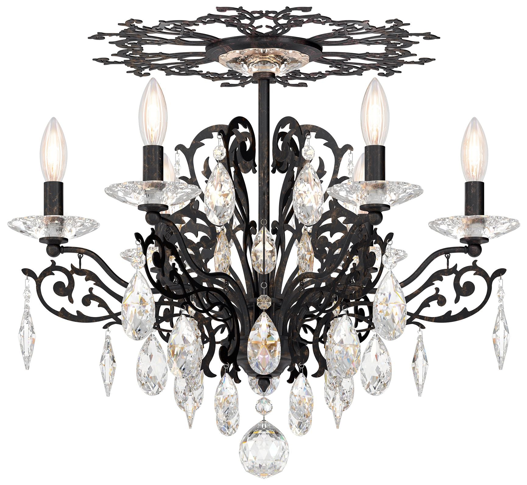 Filigrae 18.5"H x 23"W 6-Light Crystal Semi-Flush Mount in Heirlo
