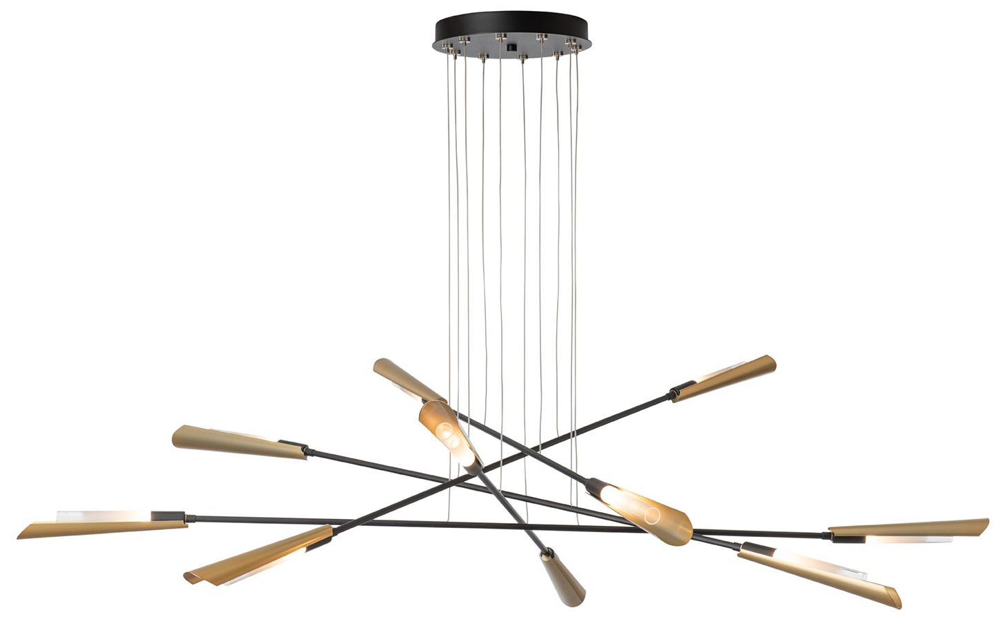 Flight 73.2" Wide 10-Light Black Pendant With Modern Brass Shade