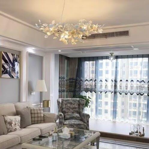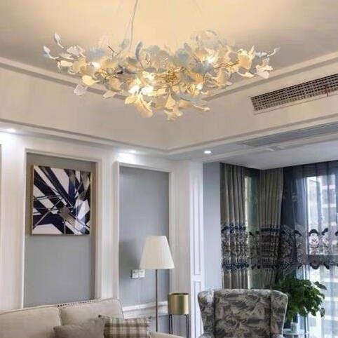 This ceramic ginkgo tree petal chandelier shows its luxurious style in overall design, material, and manufacturing technology. The metal lamp body is covered with exquisite ceramic petals, which reflects the perfect combination of lighting design and natural plants.