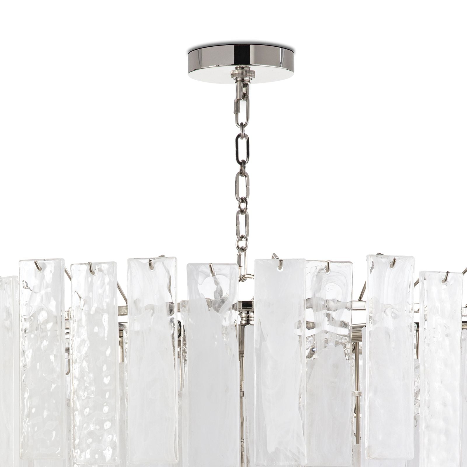 Striking and cool, this traditional glam sixteen-light chandelier recreates the ephemeral nature of beautifully textured ice sheets.