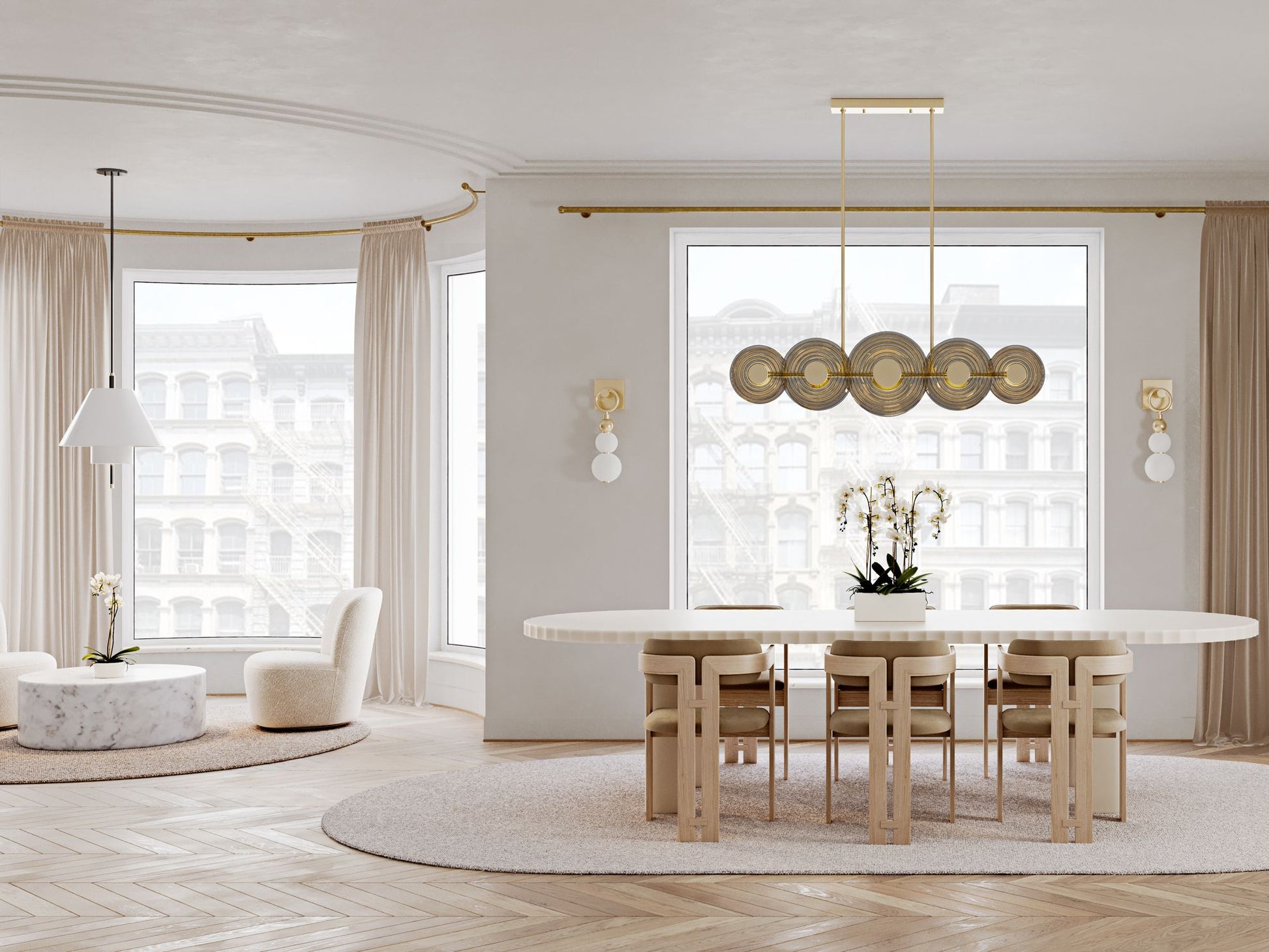 • Griston linear chandelier. Uses as a kitchen island light or install over a long dining room table. From the Hudson Valley brand.