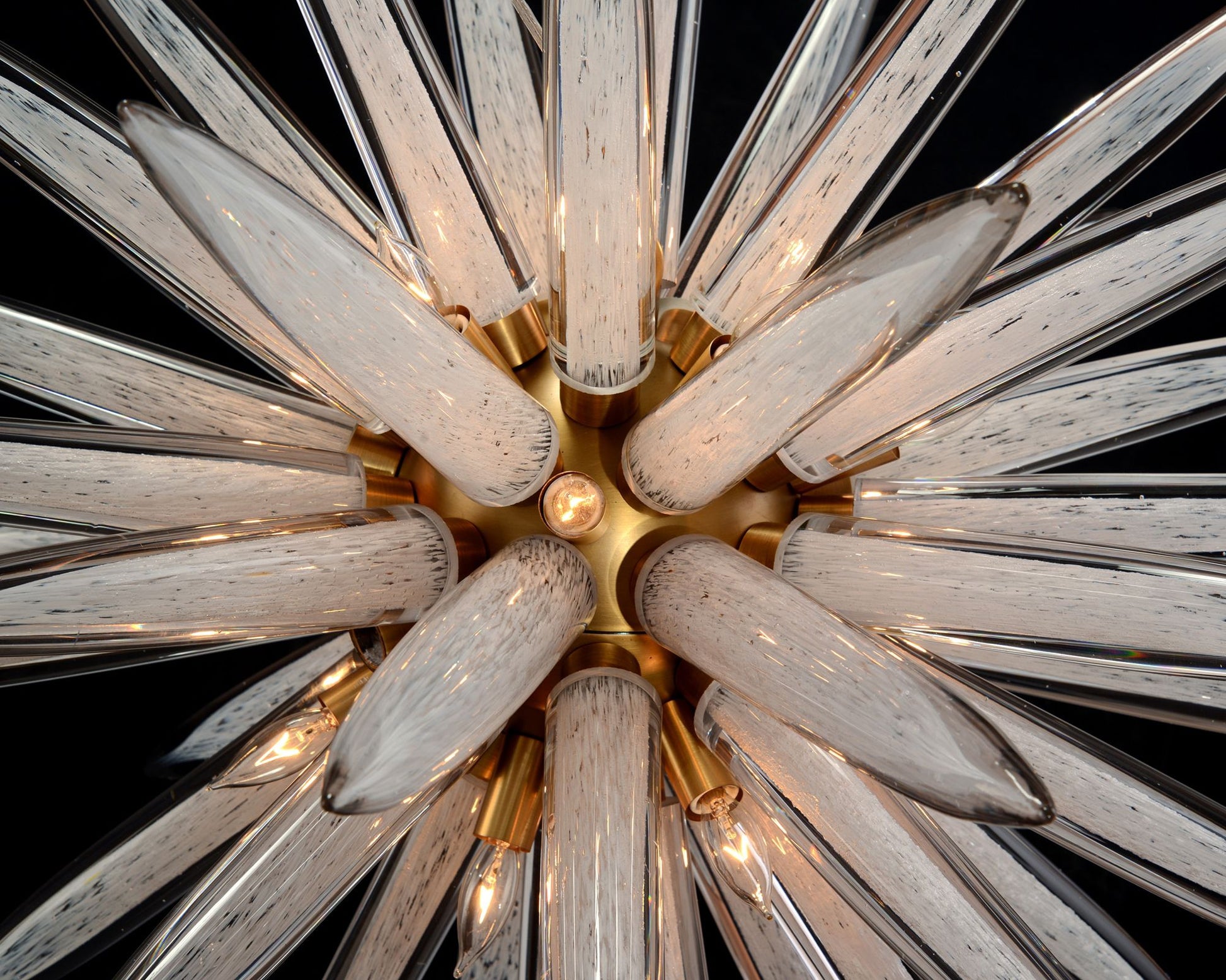 • Sphere sixteen-light modern pendant light by the John Richard brand. Handcrafted glass forms the modern starburst shape.