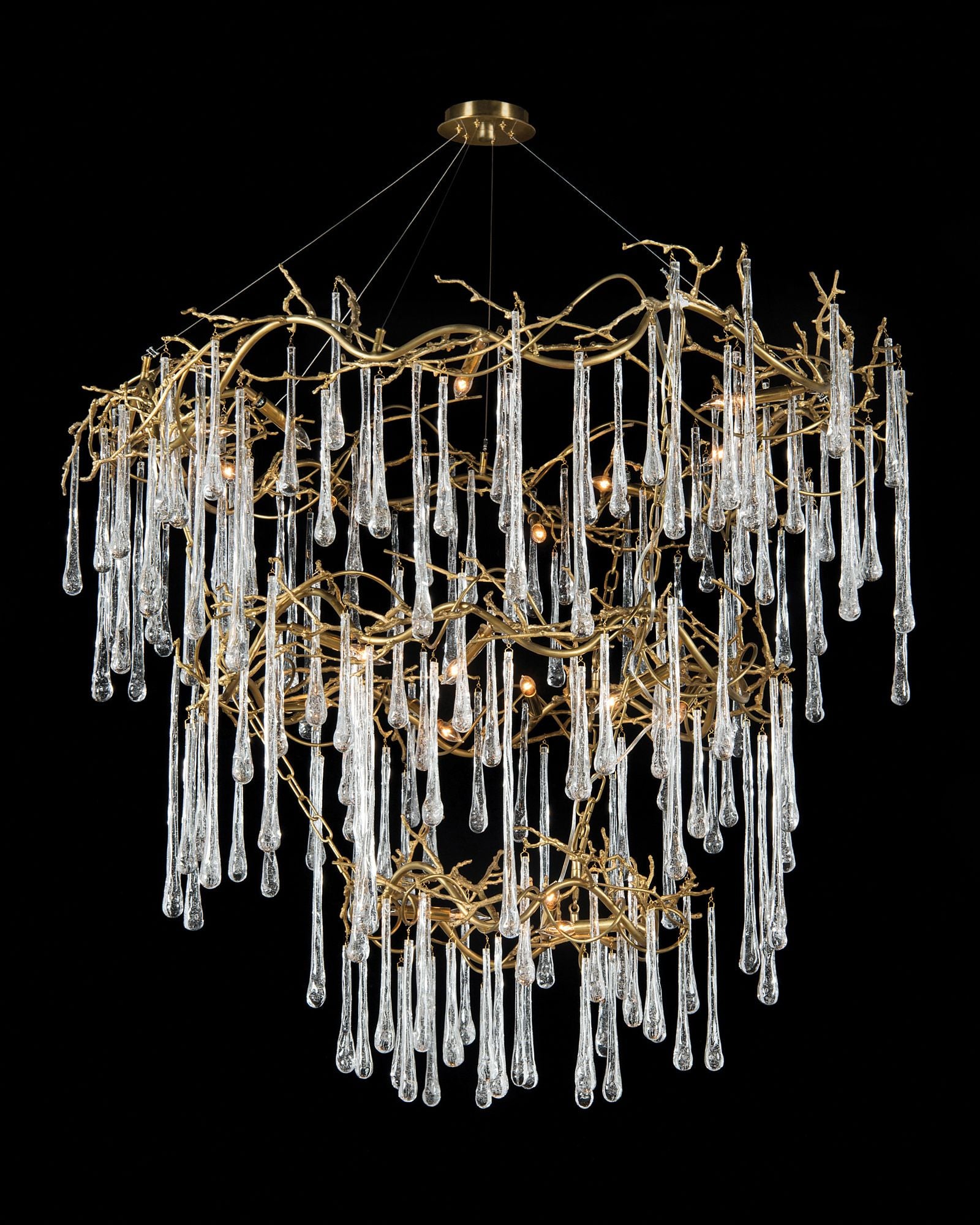 • Three-tier twenty-light teardrop chandelier with an organic tree branch look. A handcrafted, modern chandelier from the John Richard brand.