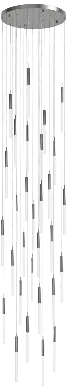 Sleek metal and frosted glass combine in this modern glam energy-efficient LED multi-light pendant for a dramatic, sculptural effect.
