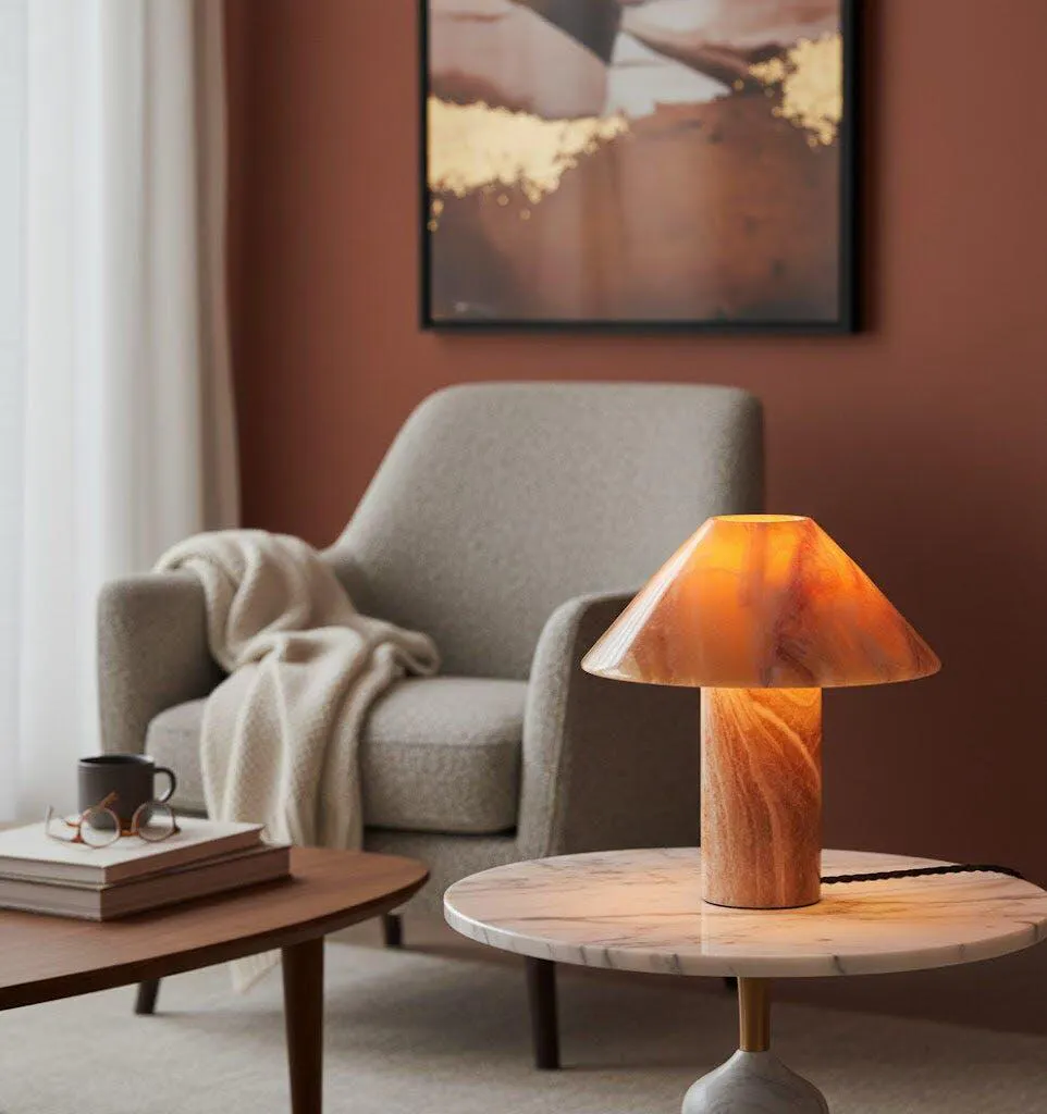 Elevate your space with the timeless elegance of the Marbelle Onyx Table Lamp. Hand-carved from natural onyx stone, each lamp showcases unique veining and warm amber hues that create a soft, ambient glow. The minimalist silhouette and rich textures bring a touch of organic luxury to any interior—whether on a bedside table, console, or reading nook.