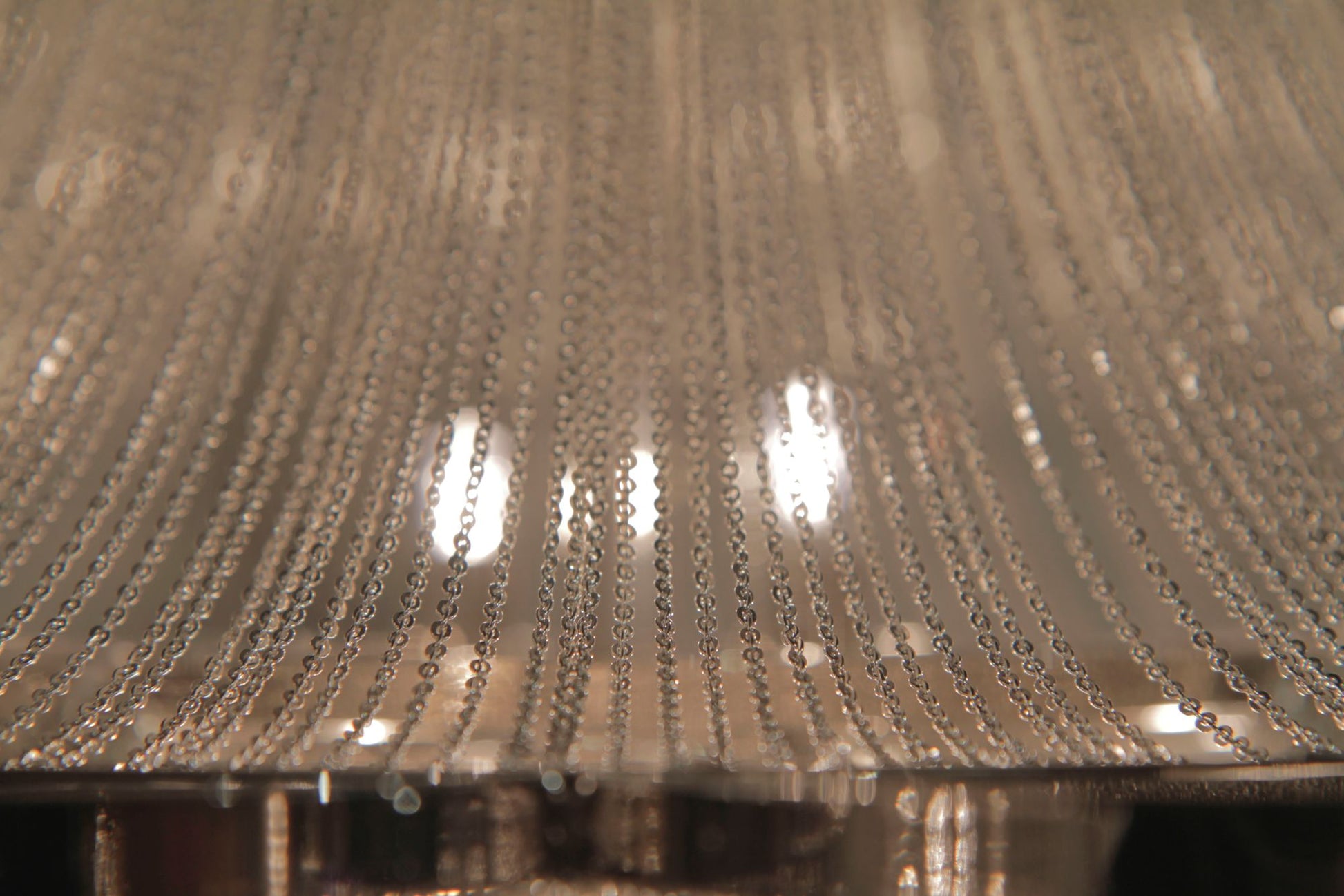 This large jewelry chain chandelier has a strikingly beautiful design in a polished nickel finish.