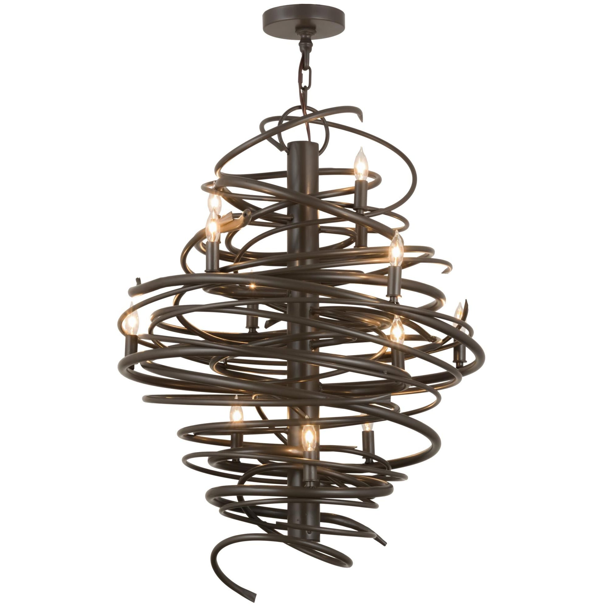 The popular Cyclone simulates whirling winds of energy and gyration with twisting Solid Steel tubing that is accentuated with 12 strategically placed faux candlelights. The winding mass of steel surrounds a sturdy post; all finished in Timeless Bronze. The fixture is handcrafted by artisans in our Upstate New York manufacturing facility. Custom designs; styles; sizes and dimmable energy efficient lamping are available. UL and cUL Listed.