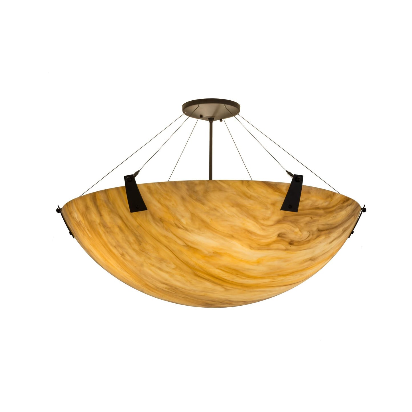 A dramatic centerpiece that will highlight any room; Araneta reveals stunning Travertine Idalight in a dome profile which is enhanced with decorative accents and hardware featured in an Oil Rubbed Bronze finish. 4 customer-supplied Gu24 compact fluorescent lamps (CFLs) provide energy efficient lamping for reduced maintenance and long lamp life. Handcrafted in the Usa; this ceiling fixture is offered in custom colors; sizes and patterns; and with dimmable LED and standard lamping options. UL and cUL listed for damp and dry locations.