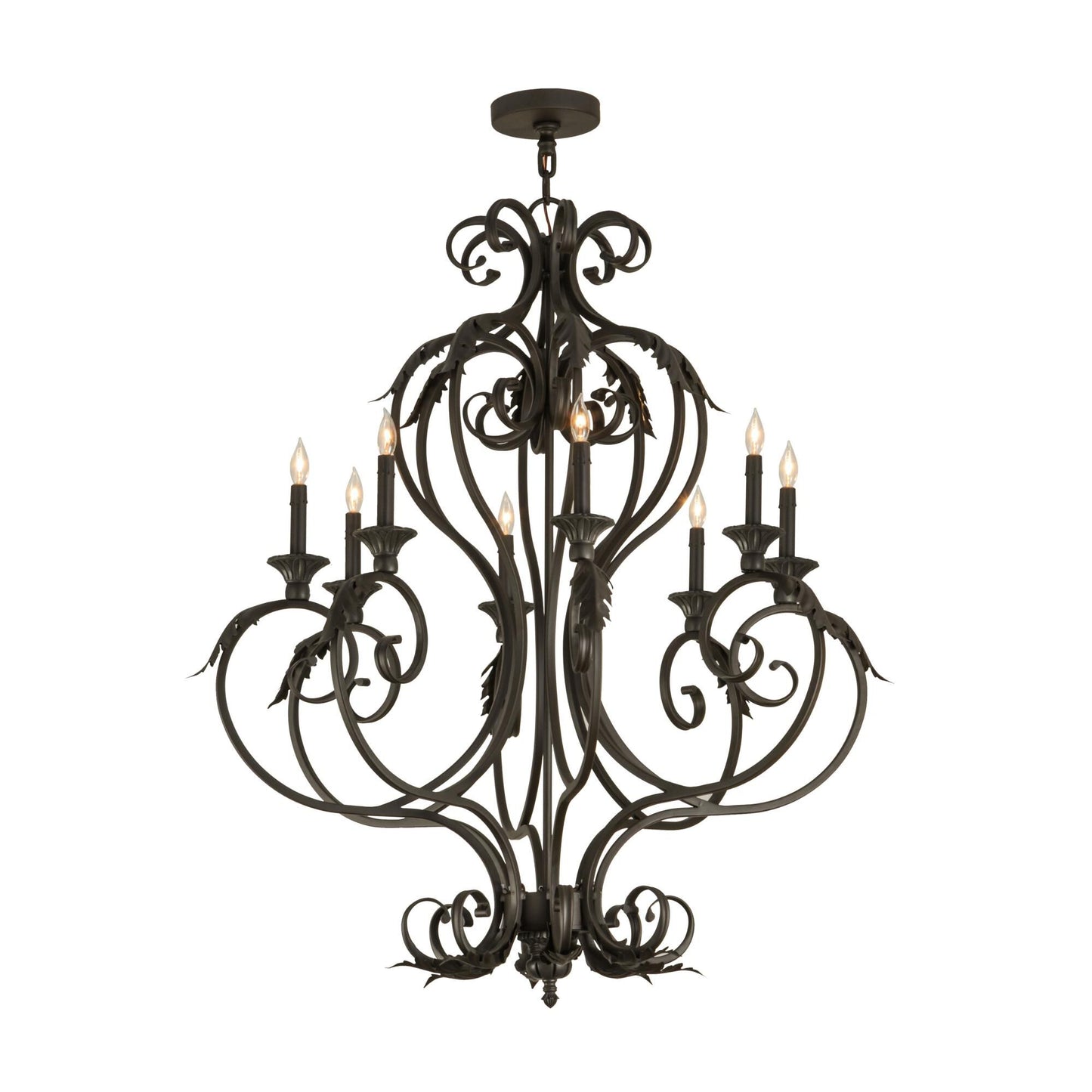 Offering luxurious charm and elegance; Josephine features a sophisticated chandelier design with Hand-forged scrolled arms; finial and Acanthus leaf accents in a stunning Oil Rubbed Bronze finish. The exquisite chandelier features 8 coordinating Oil Rubbed Bronze finished candlelights perched on decorative bobeches for beautiful ambient illumination and accented with Crystal Pendalogues. Custom crafted in the Usa; this lovely fixture is available in custom sizes; styles and colors; as well as dimmable energy efficient lamping options such as Led. The chandelier is UL and cUL listed for dry and damp locations.