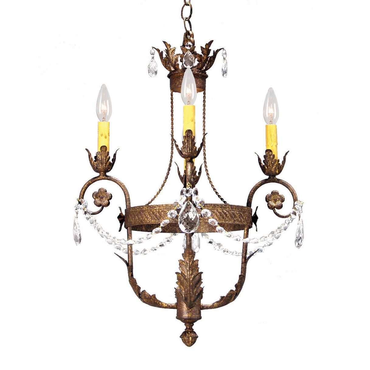 Exquisite styling and luxurious charm are reflected in these faceted crystal charms; scroll arms; Acanthus leaves and rich Pompeii Gold finished hardware which embraces 4 Amber faux candlelights. This elegant chandelier features quality materials and hand detailed American craftsmanship perfected by years of time honored artistry and passed down from generations of skilled artisans. Custom sizes; styles; colors and dimmable energy efficient lamping options such as LED are available. The fixture is UL and cUL listed for damp and dry locations.