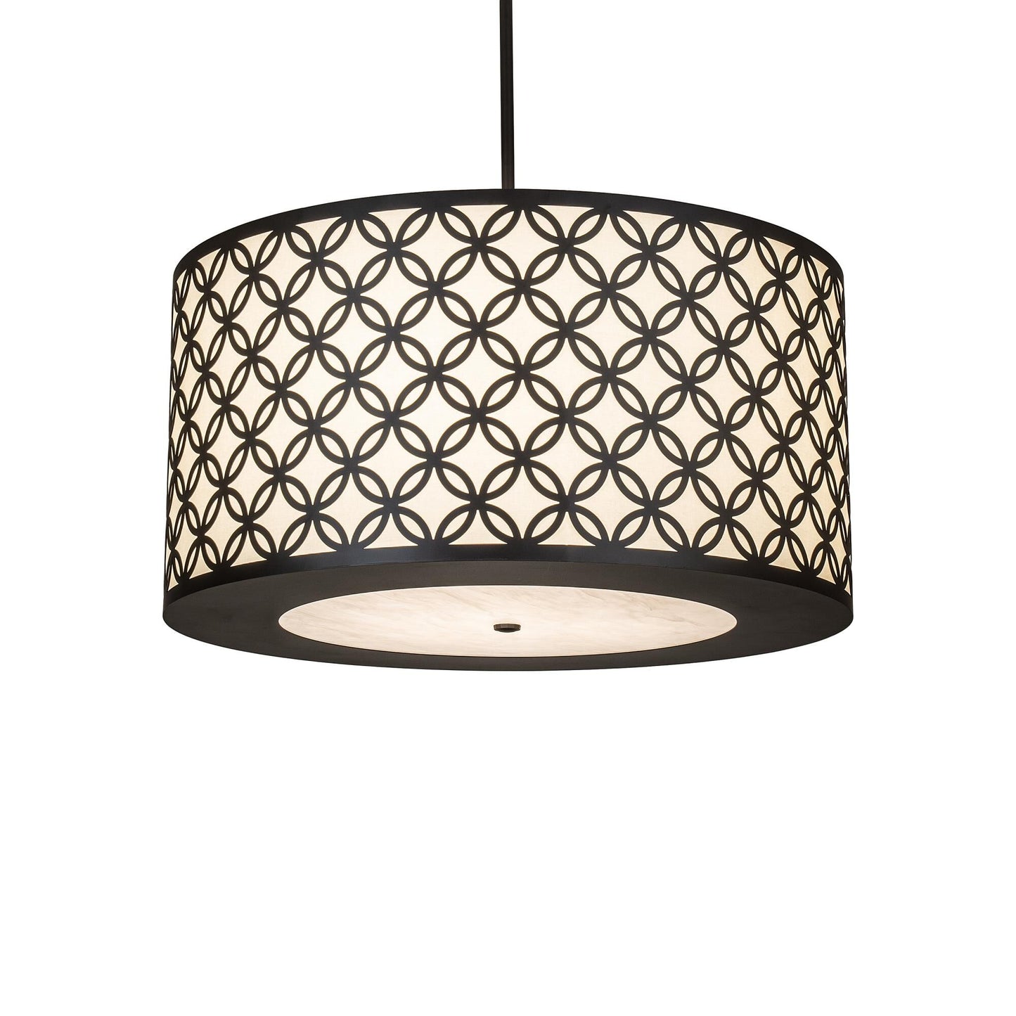 A mesmerizing Art Deco design comes to light with the Cilindro Dekko Pendant. An all-over array of stylized Orbs and Diamonds is highlighted across the Beige Fabric shade. The dazzling shade is enhanced with a Whitestone Idalight bottom diffuser and an Oil Rubbed Bronze finish. Made to Order in our 180;000 square foot manufacturing facility in Yorkville; New York. Customize the shade colors; metal finishes and fixture size to meet your desires. UL and cUL listed for dry and damp locations however we do not recommend installing it in spaces that experience a large amount of moisture due to the fabric shade.