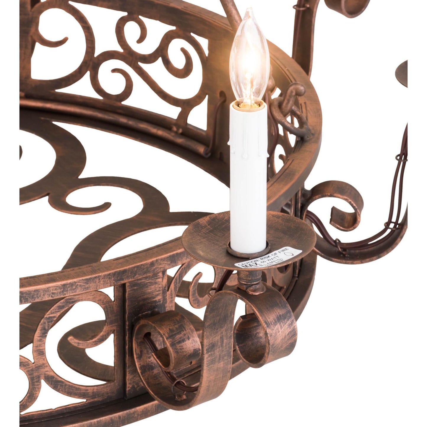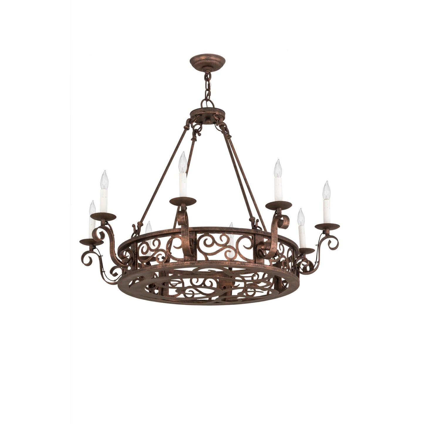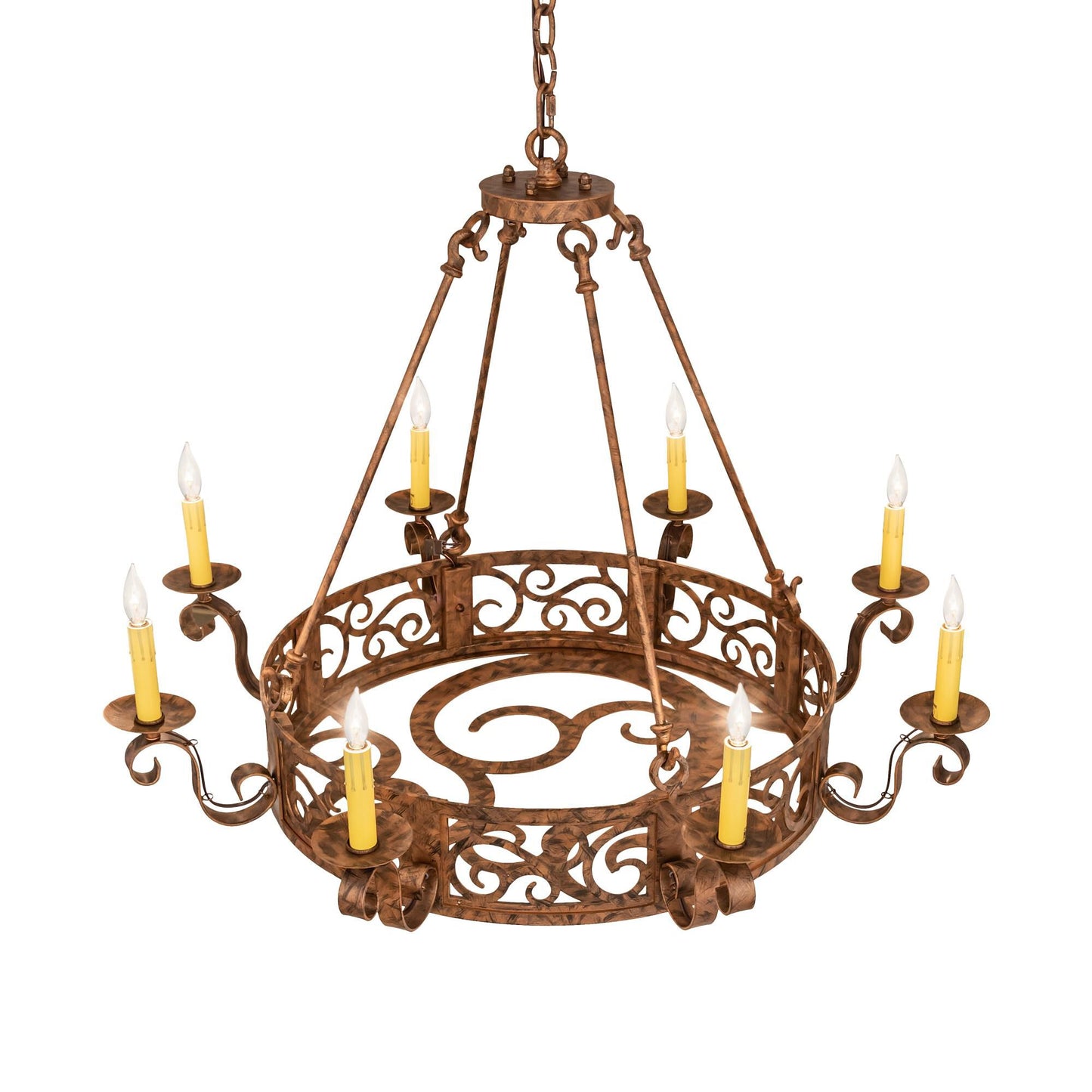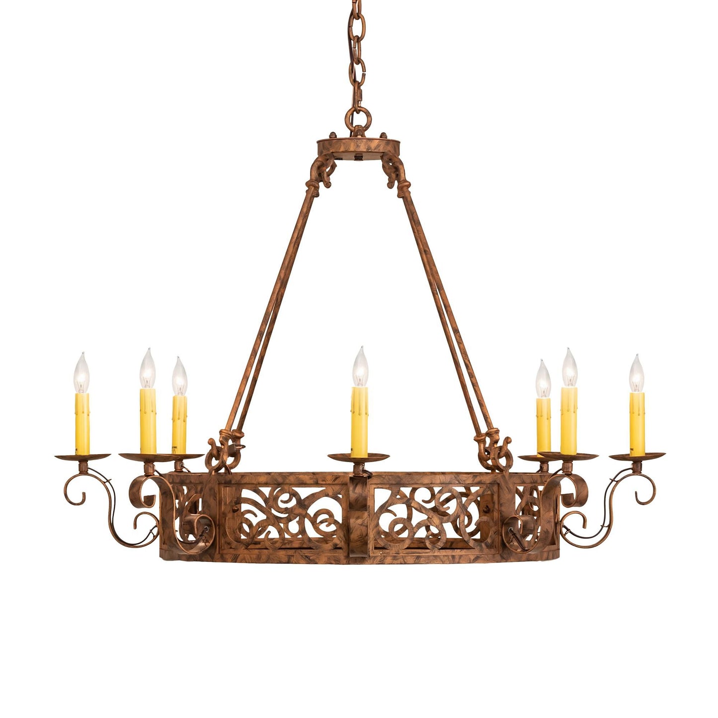 A Touch Of Warm Opulence Is Blended With Elegant Scroll-Like Styling. This Chandelier Offers A Lovely Transitional Style; Which Is Handcrafted With Decorative Accents And Hardware Featured In A Stunning Antique Copper Finish. The Fixture Integrates Sparkling Illumination Emanating From Eight Faux Candlelights Perched On Bobeches Embraced By Scroll Styled Arms. Custom Crafted In The Usa; This Fixture Is Available In Custom Sizes; Styles; Colors And Dimmable Energy Efficient Lamping. Delano Is Ul And Cul Listed For Damp And Dry Locations.