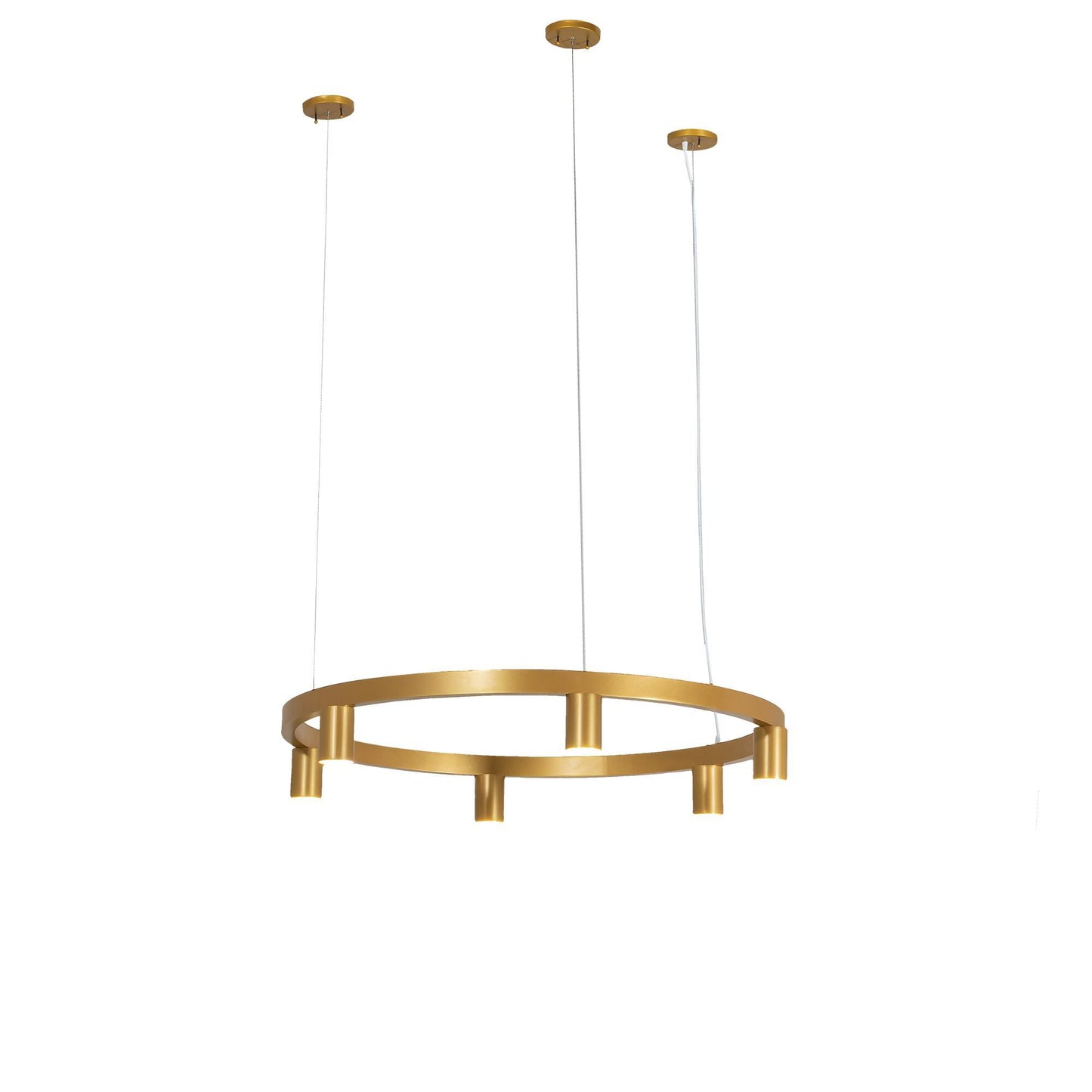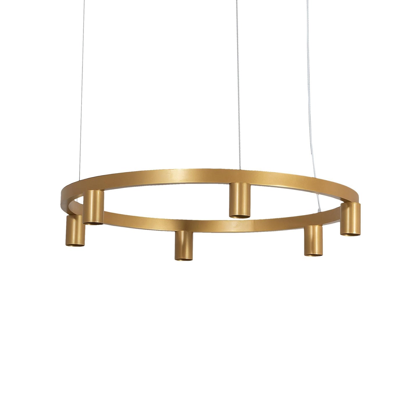 A Luxurious Minimalist Chandelier That Provides Optimal Downlighting On Surfaces Below. The Goldtastic Finished Ring Embraces Six Downlights; And The Fixture'S Overall Height Ranges From 10 To 129 Inches As The Chain Easily Adjusts In The Field For Precise Lighting Application. The Korfu Chandelier Is Included In Our American-Made; American-Designed; Handcrafted Transitional Lighting Collection. Manufactured In Yorkville; Ny. Ul And Cul Listed For Dry And Damp Locations.