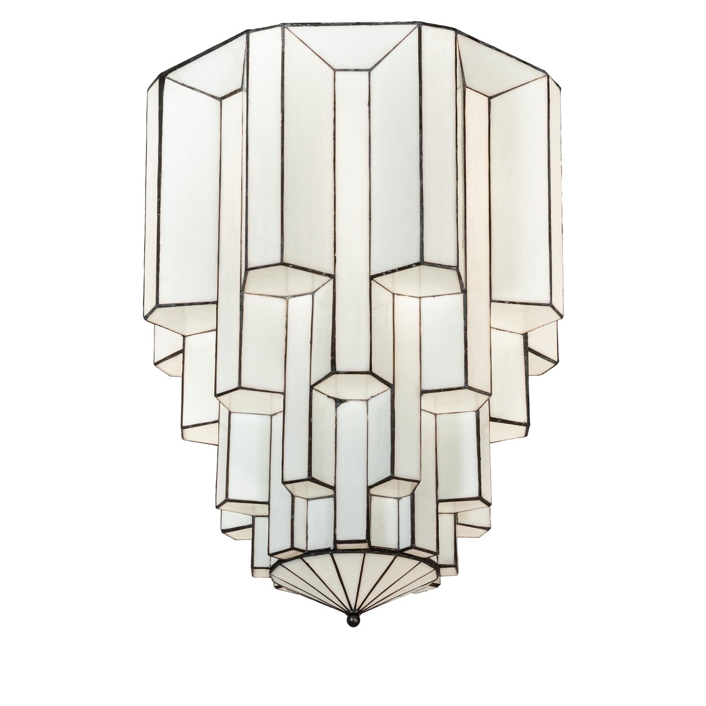 The material is Steel and Glass. The finish is Antique Iron Gate. The stained glass is White Opal.