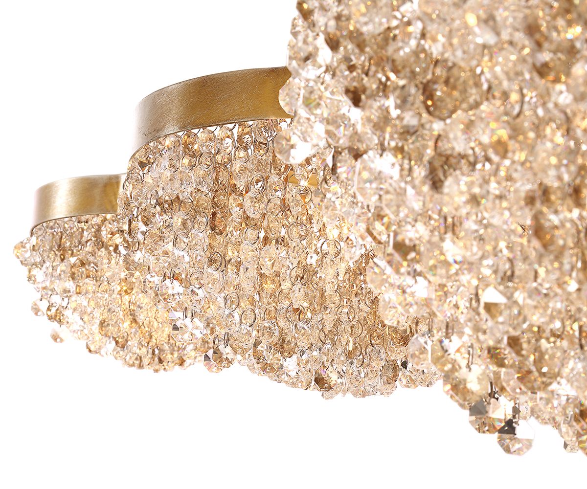 • Antique gold finish over metal construction. Clear octagonal crystal beads.