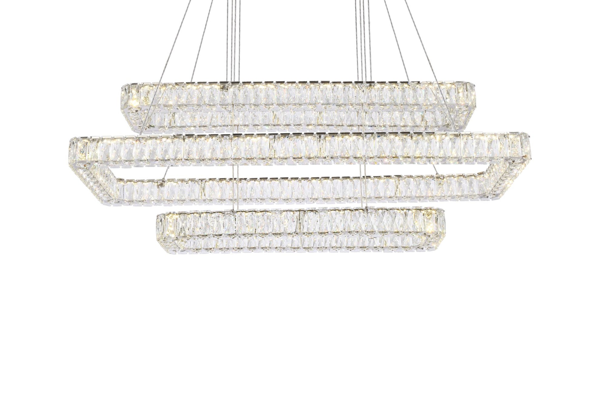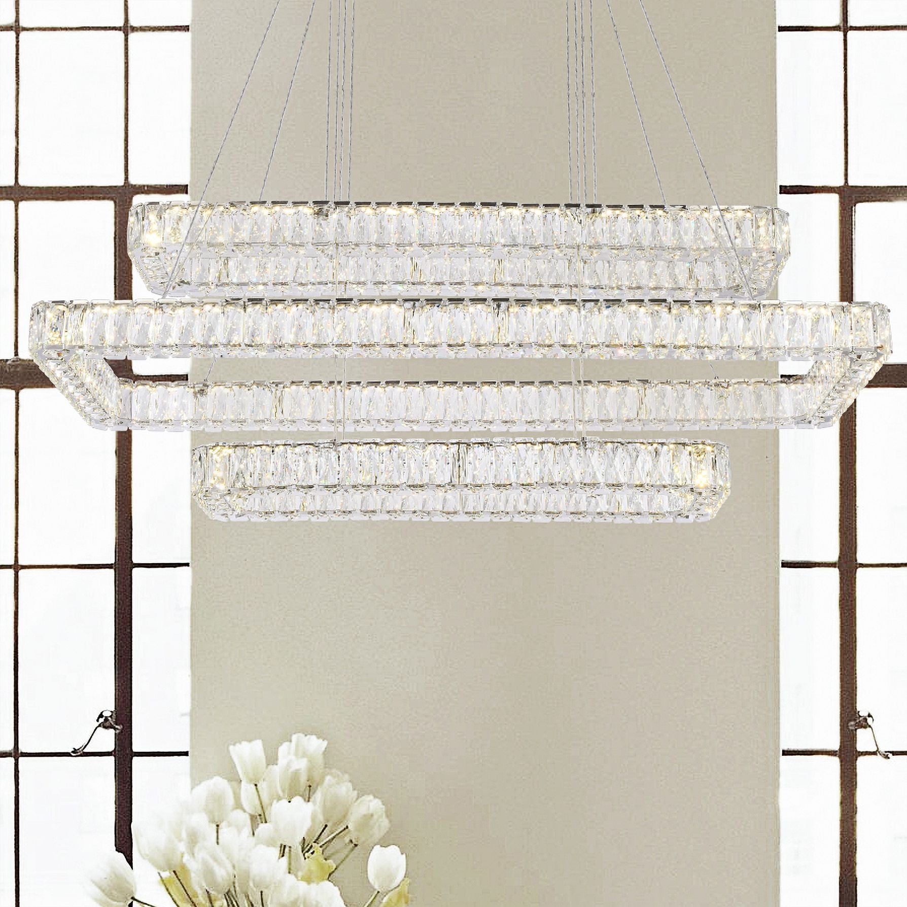 • Modern glam three-tier energy-efficient LED chandelier from the Monroe collection.