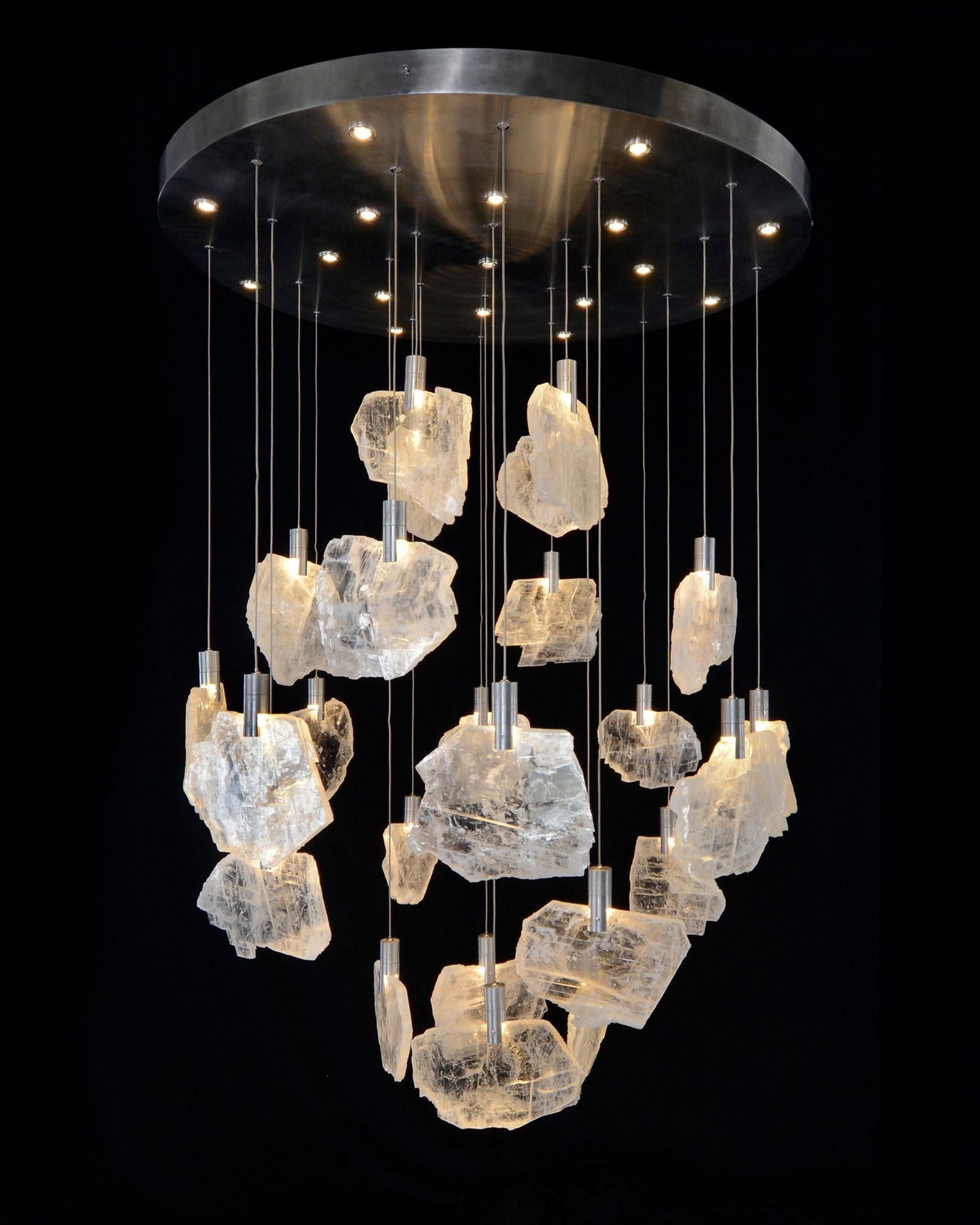 Explore an exotic look with this multi-light LED selenite and brushed stainless steel pendant light.