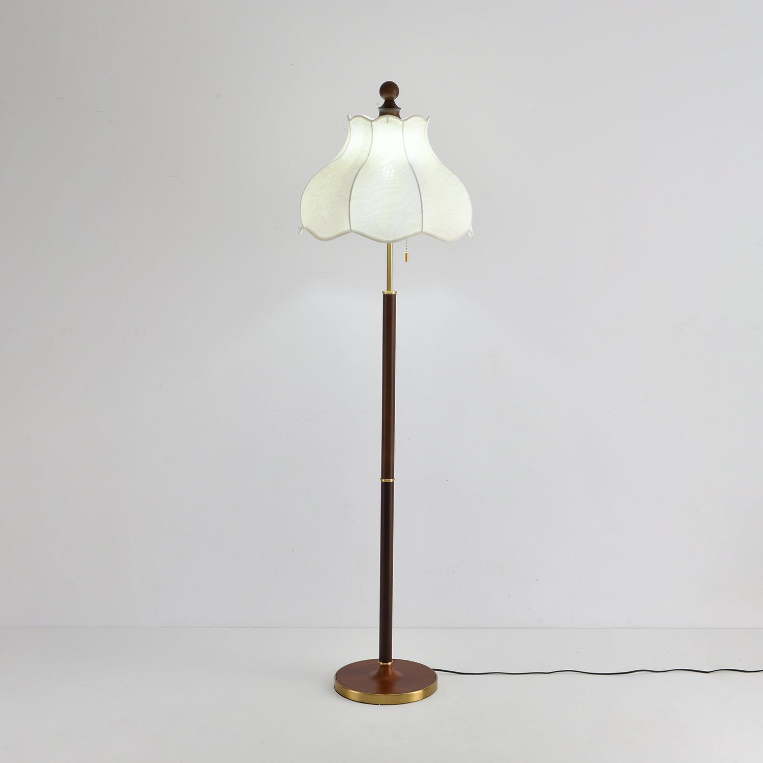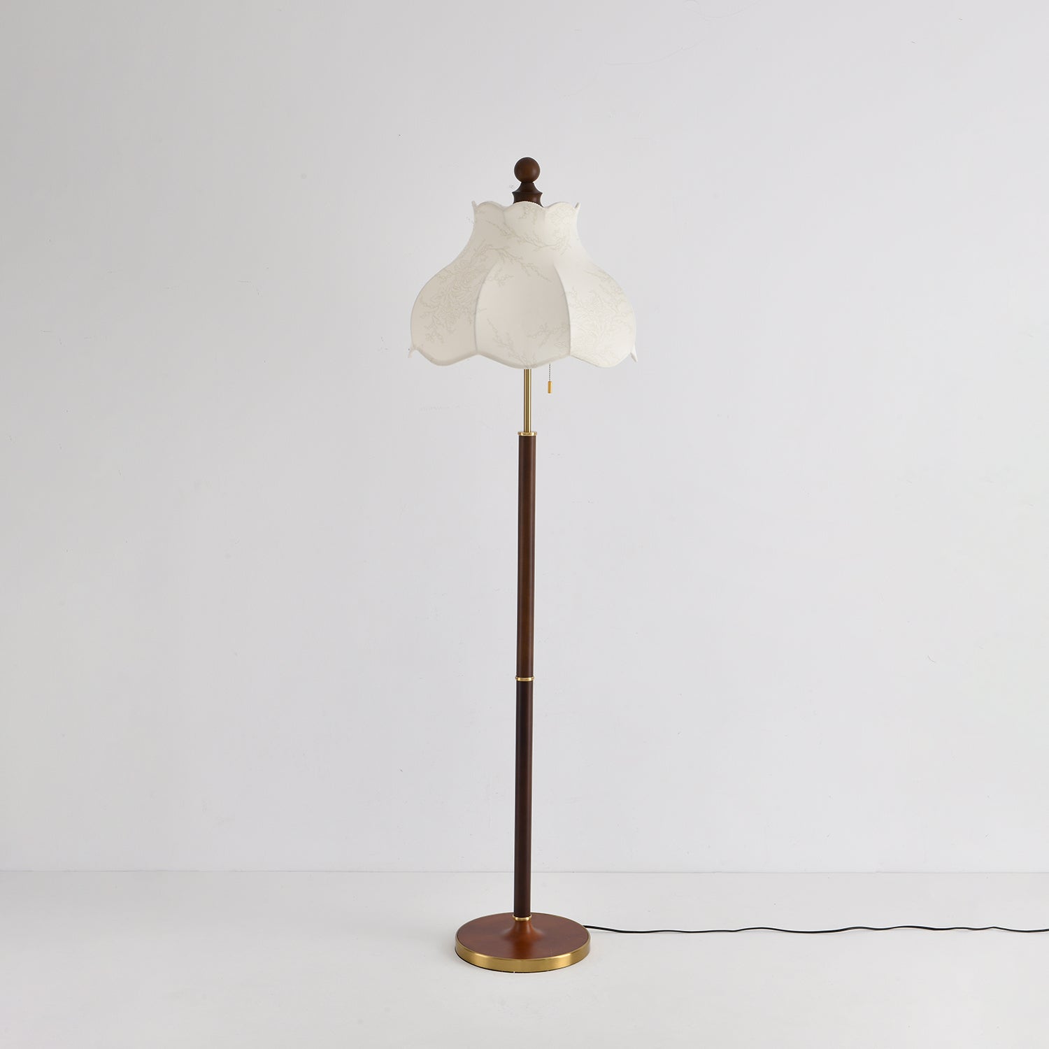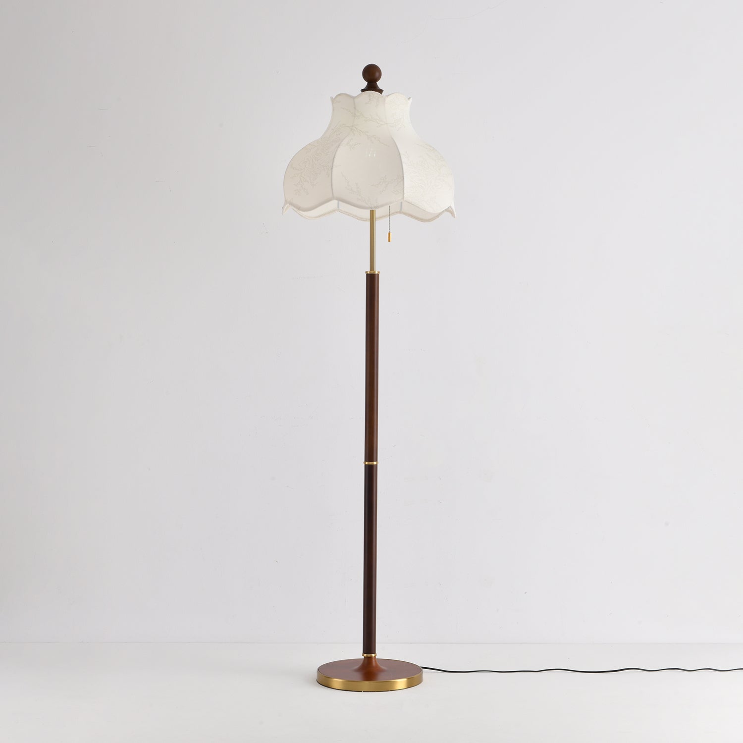 The slender wooden stem, accented with golden brass touches, adds warmth and sophistication to any space—perfect for living rooms, reading nooks, or bedrooms. The classic pull-chain switch enhances the nostalgic feel, making this lamp not just a source of light, but a piece of decorative art.