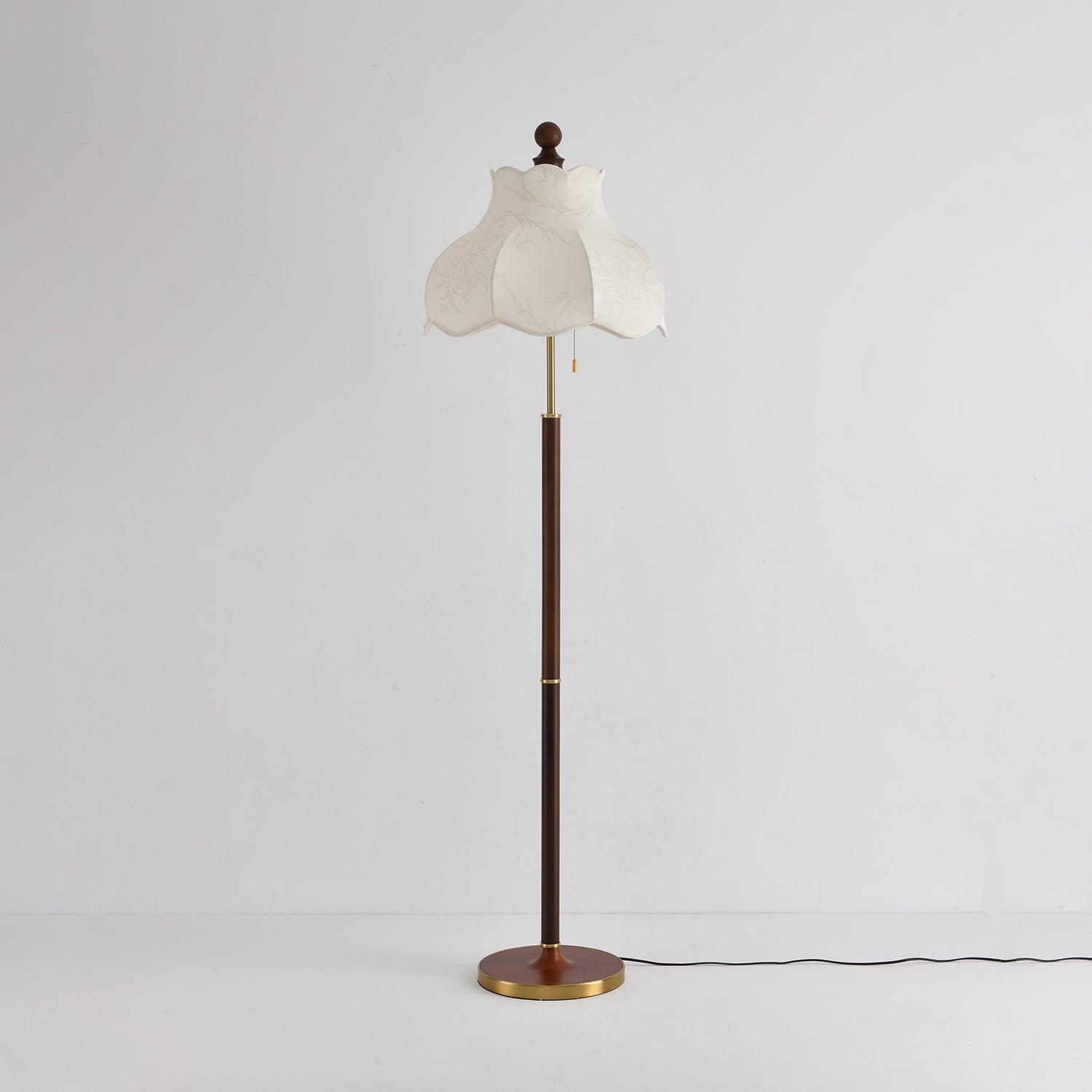 Timeless elegance meets vintage charm with the Roselle Bloom Floor Lamp. Inspired by the graceful curves of a blooming flower, this floor lamp features a beautifully scalloped fabric shade adorned with delicate floral patterns, casting a soft, inviting glow.