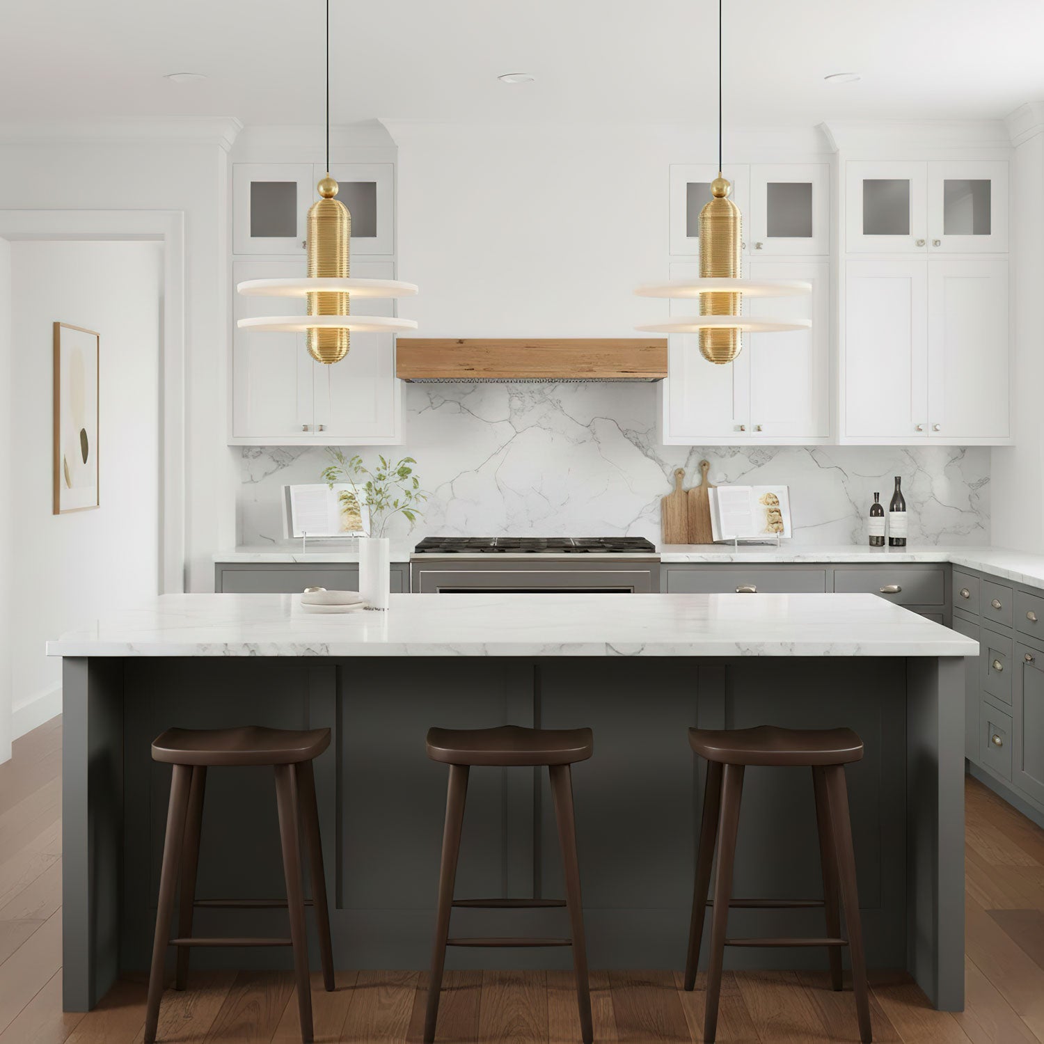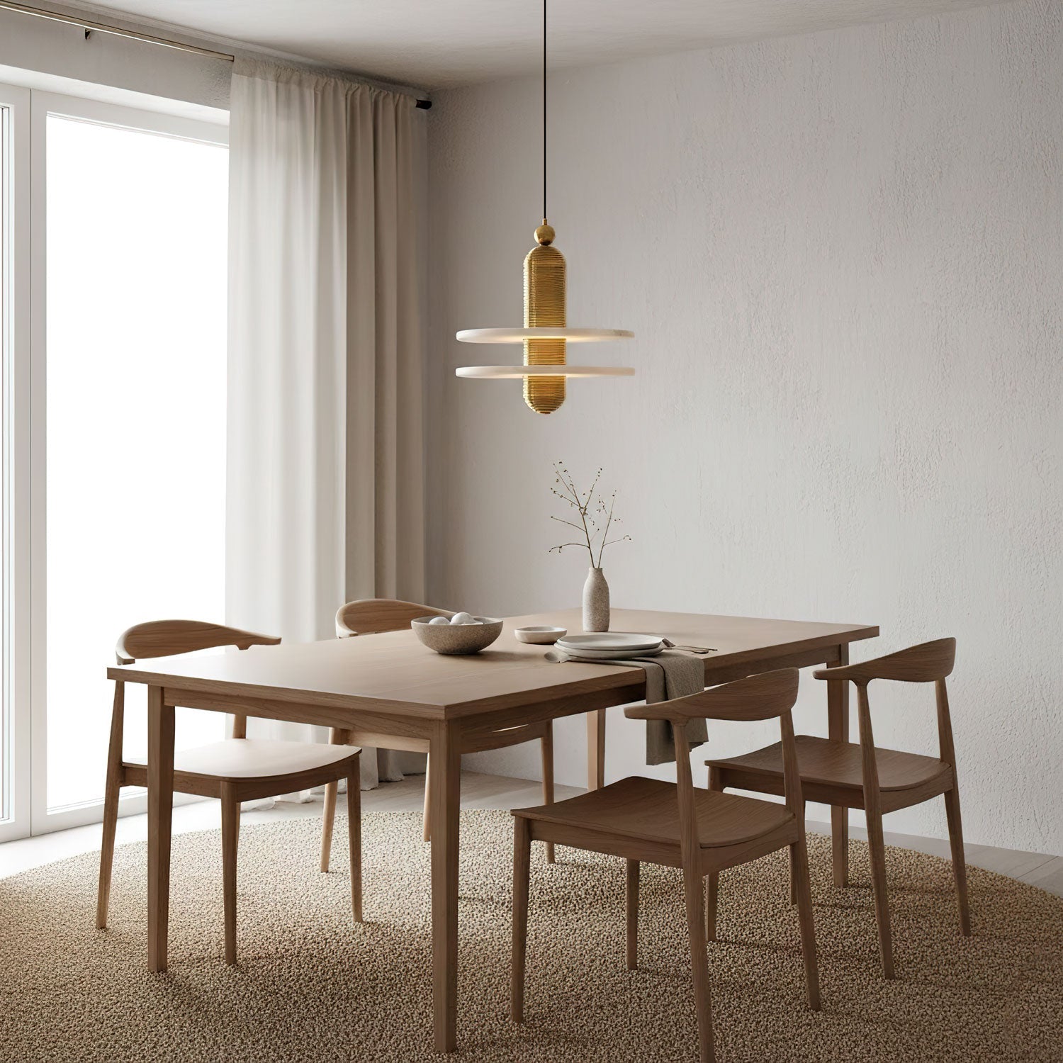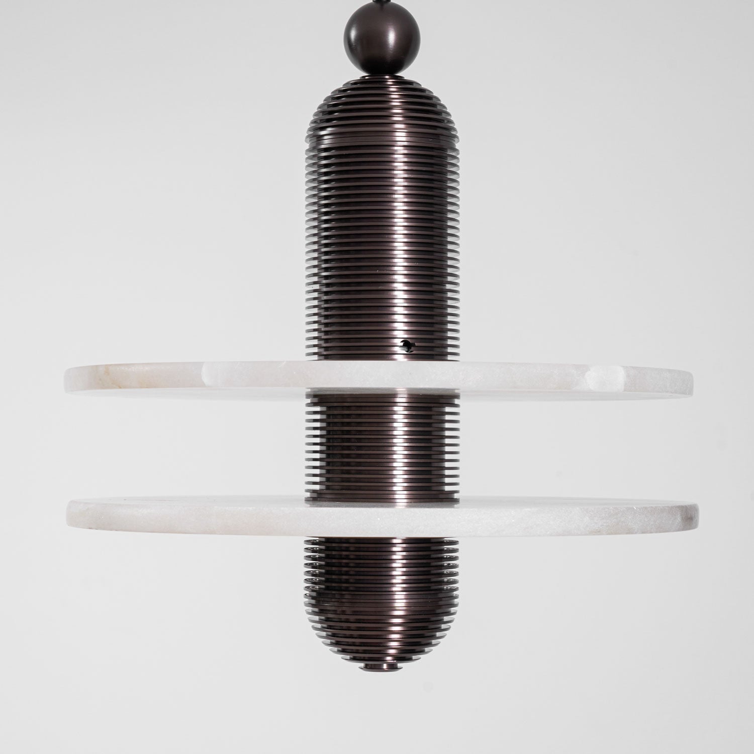 Inspired by the majestic form of Saturn, this pendant light features a circular alabaster diffuser paired with ribbed, brass-finished metal elements. The natural translucency of the alabaster emits a warm, ambient glow, while the sculptural design adds a contemporary and luxurious touch to any interior space. Each piece is unique due to the natural variations in the stone, making it a true statement fixture.
