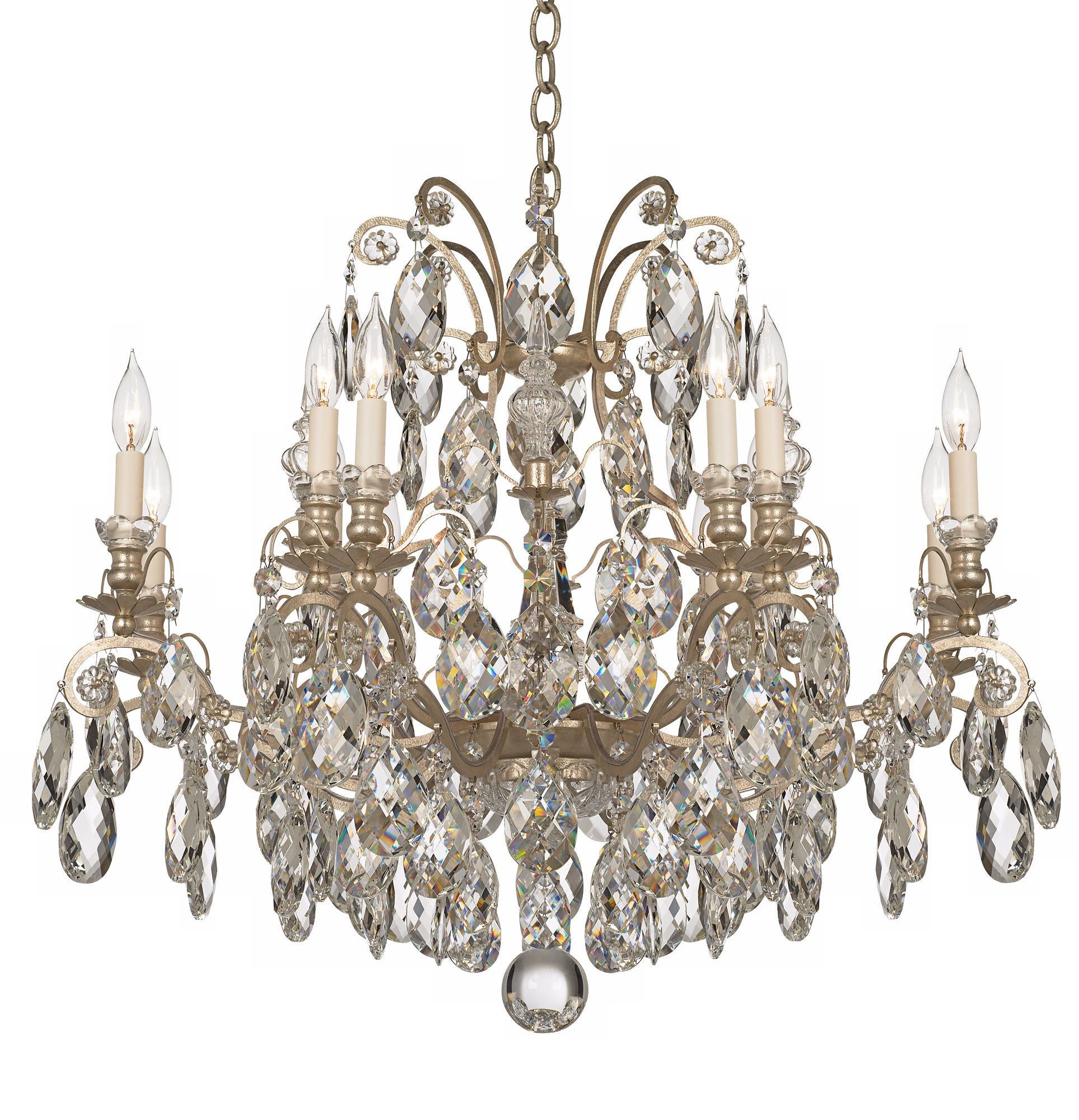 • A traditional crystal chandelier design by the acclaimed Schonbek lighting brand. Artisan designed and made. An elegant choice for dining rooms or entry halls.