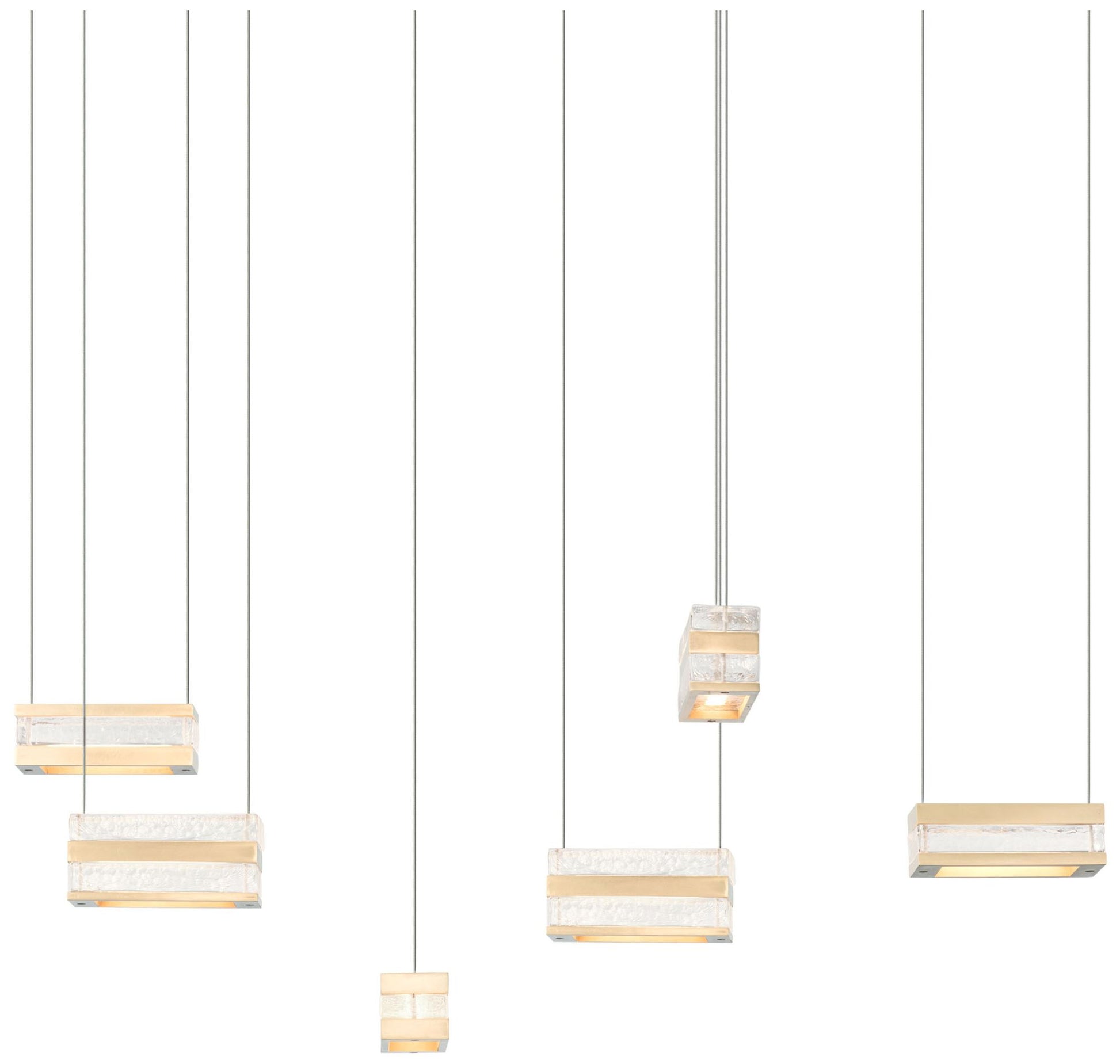 Stacks 33.7" Wide 6-Light Modern Brass LED Pendant With Clear Glass