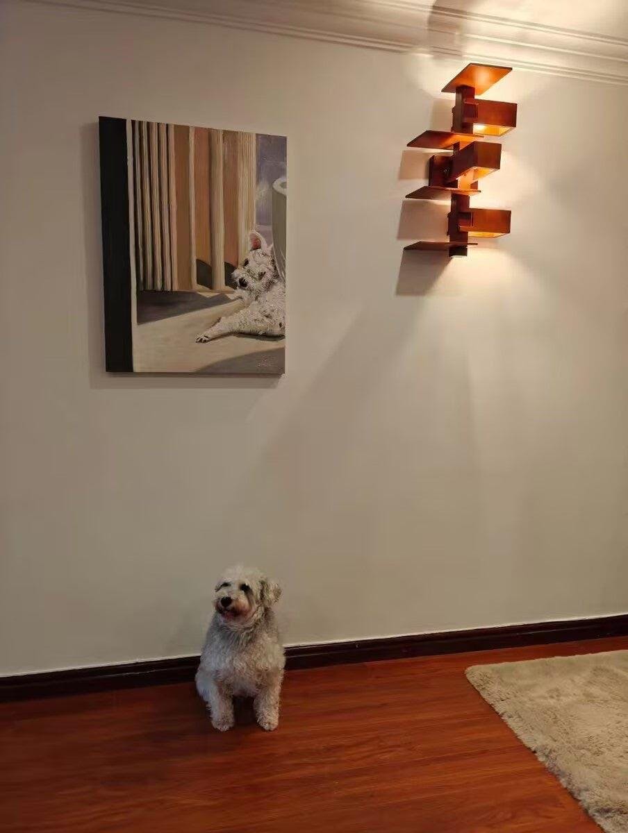 Constructed with high-quality solid wood, the Taliesin Wall Lamp features multiple rectangular tower-like structures, providing a modern and elegant touch to any room. Enhance your space with this unique and durable lighting option.
