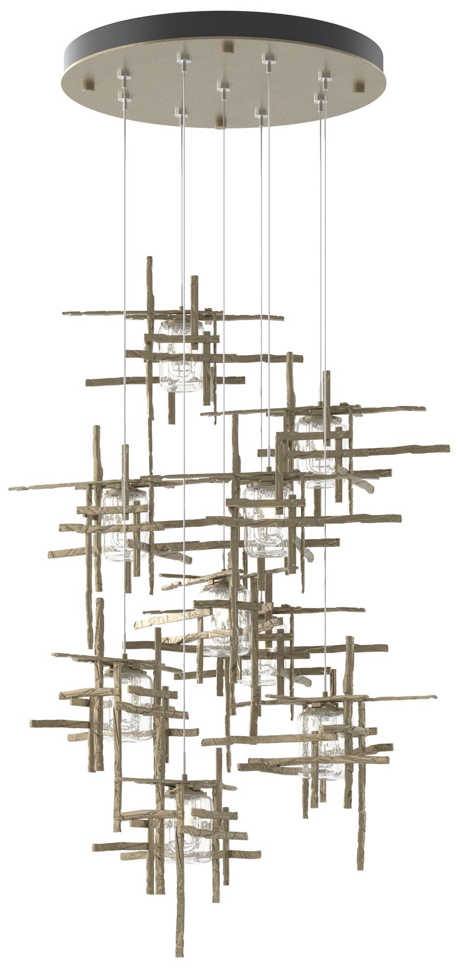Tura 29.6"W 9-Light Round Soft Gold Standard Pendant w/ Seeded Glass S