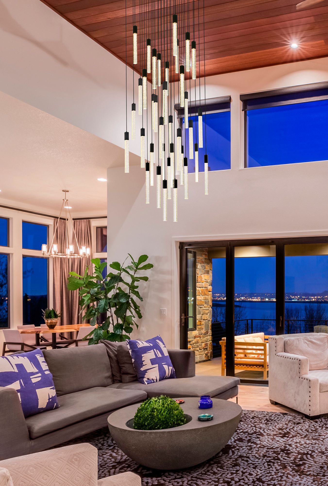 Staggered crystals glitter and gleam in the sophisticated silhouette of this modern glam multi-light pendant.